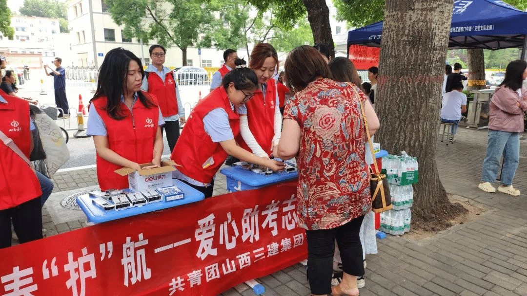 三建集团在长治、太原、晋城等地开展“为梦想而战 为青春护航”爱心助考服务。今年服务范围延伸至考点周边的户外工作者,志愿者们同样也为环卫工人、执勤交警等考点保障工作者们送去清凉物资。
