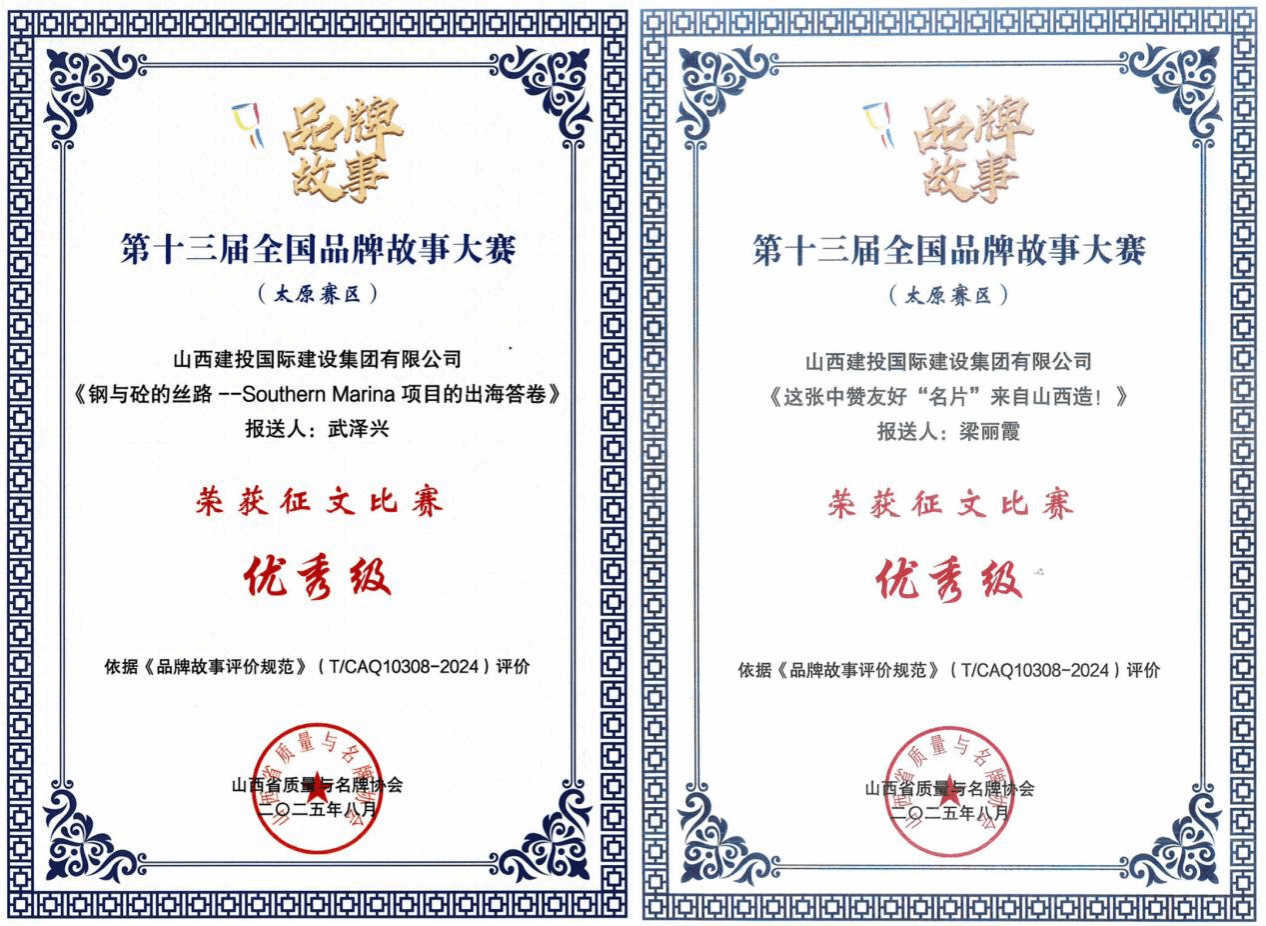 国际建设集团《钢与砼的丝路——Southern Marina 项目的出海答卷》《这张中赞友好“名片”来自山西造!》获评征文比赛优秀级