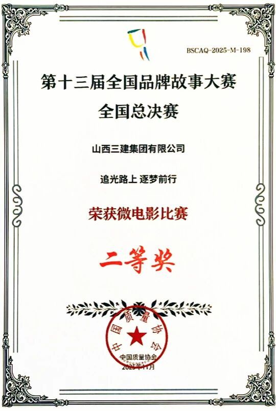 作为贯彻落实《质量强国建设纲要》《关于新时代推进品牌建设的指导意见》的全国性赛事,第十三届全国品牌故事大赛汇聚全国优秀企业力量,旨在宣传展示中国企业全面贯彻新发展理念、坚持高质量可持续发展、发挥品牌引领作用的经验和故事,是彰显企业品牌价值的重要平台,在国内品牌领域具有高度公信力与广泛影响力。大赛包括演讲比赛、征文比赛、微电影比赛和短视频比赛四种形式,包含科技创新、消费升级、卓越质量、责任担当、文化传承、品牌出海六个子主题。经过决赛评选,三建集团《追光路上 逐梦前行》、静态交通公司《出行的幸福感》荣获微电影比赛二等奖,建工集团《远征》荣获微电影比赛三等奖,国际建设集团《这张中赞友好“名片”来自山西造!》荣获征文比赛三等奖。