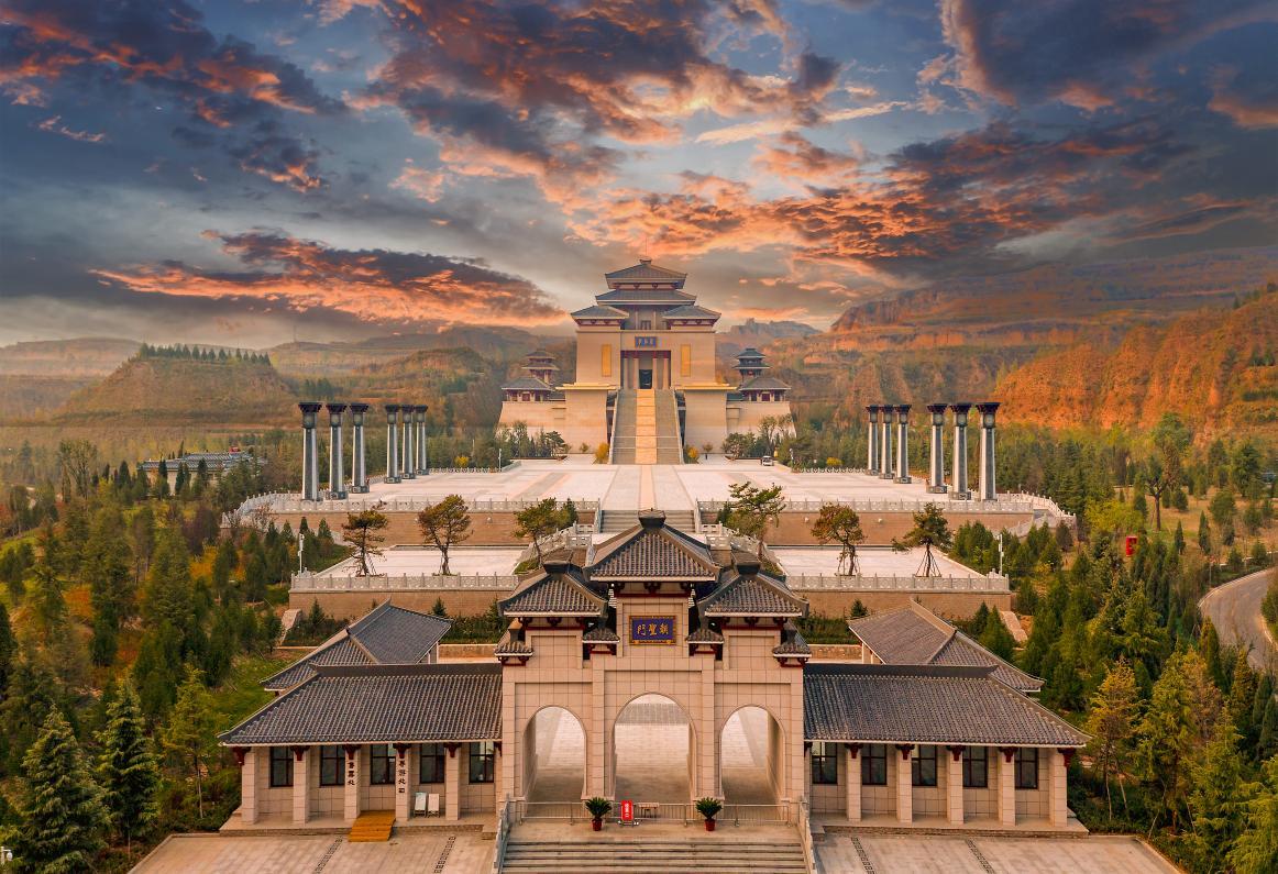 山西建投一建集团承建中国尧帝祭祀大殿工程,为历史遗迹重建,呈仿汉代式宫殿高台组团建筑形式,外形似繁体字“堯”,地处临汾市大阳镇古尧帝陵核心景区,是一座展示寻根溯源、根祖文化,具有文化传承的标志性历史建筑。集团通过优化设计、精心施工,解决了高度高、倾角大、跨度大的施工难度,采用现代材料工艺与古建工艺综合技术,完美将仿古庑殿顶挑檐长、坡度大、多重檐口的难点转化为工程亮点。项目建成后,已连续隆重举办了三届全球华人祭拜尧帝大典,推动了当地的旅游产业发展。