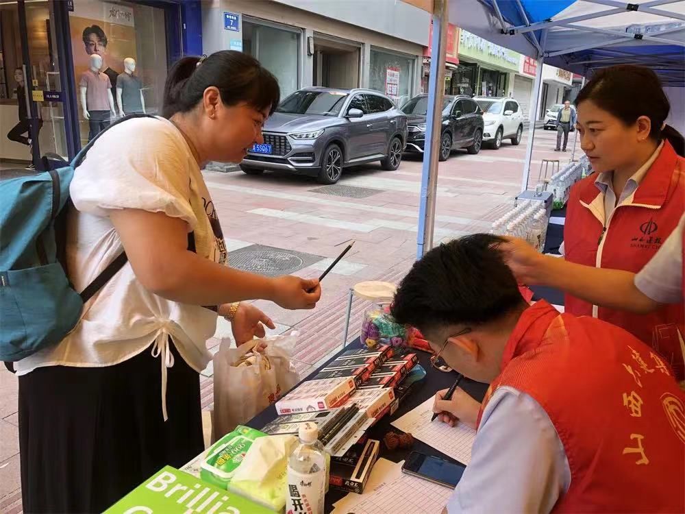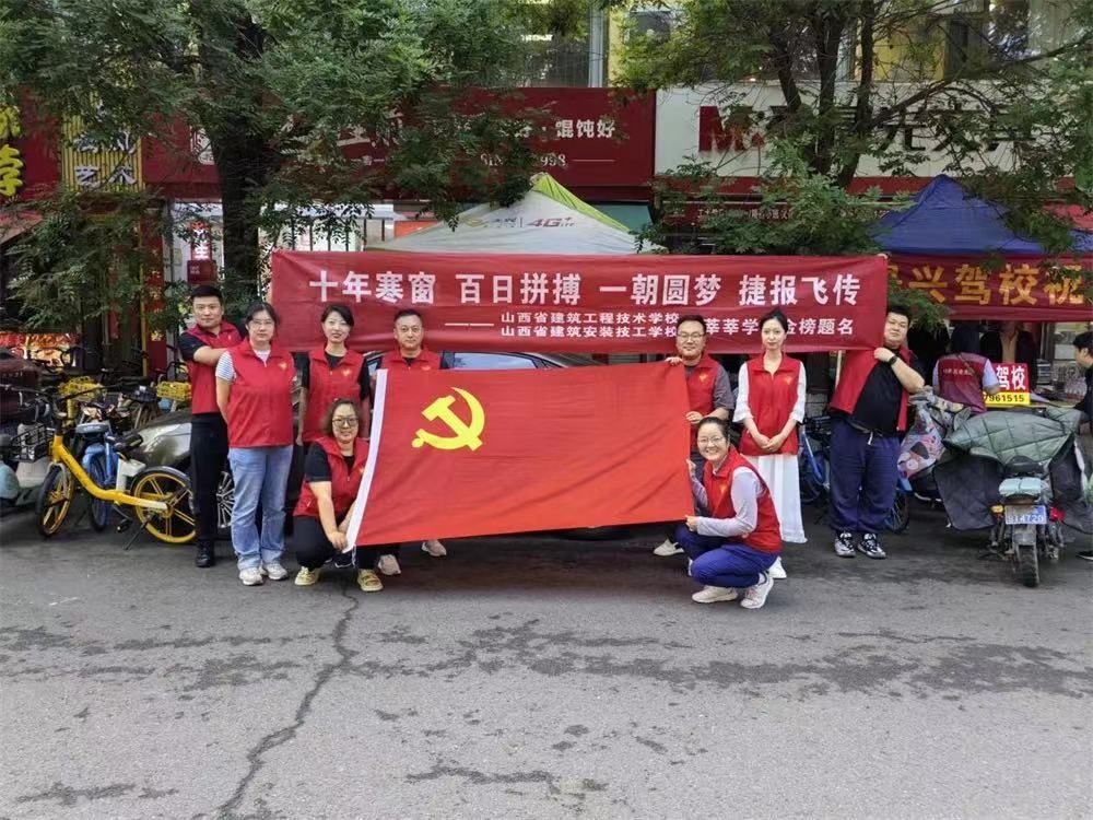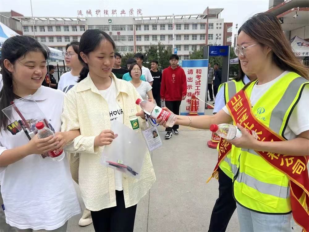 搭建遮阳帐篷,摆放桌椅,为考生家长提供休息凳、小风扇、饮水、水果等服务,并与家长们交流谈心,帮助他们缓解紧张情绪,与他们分享志愿填报心得等。