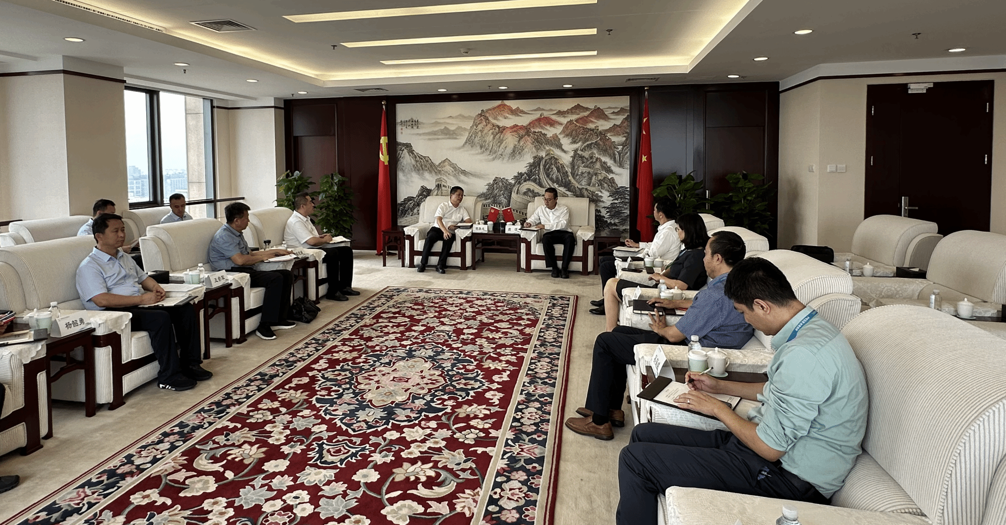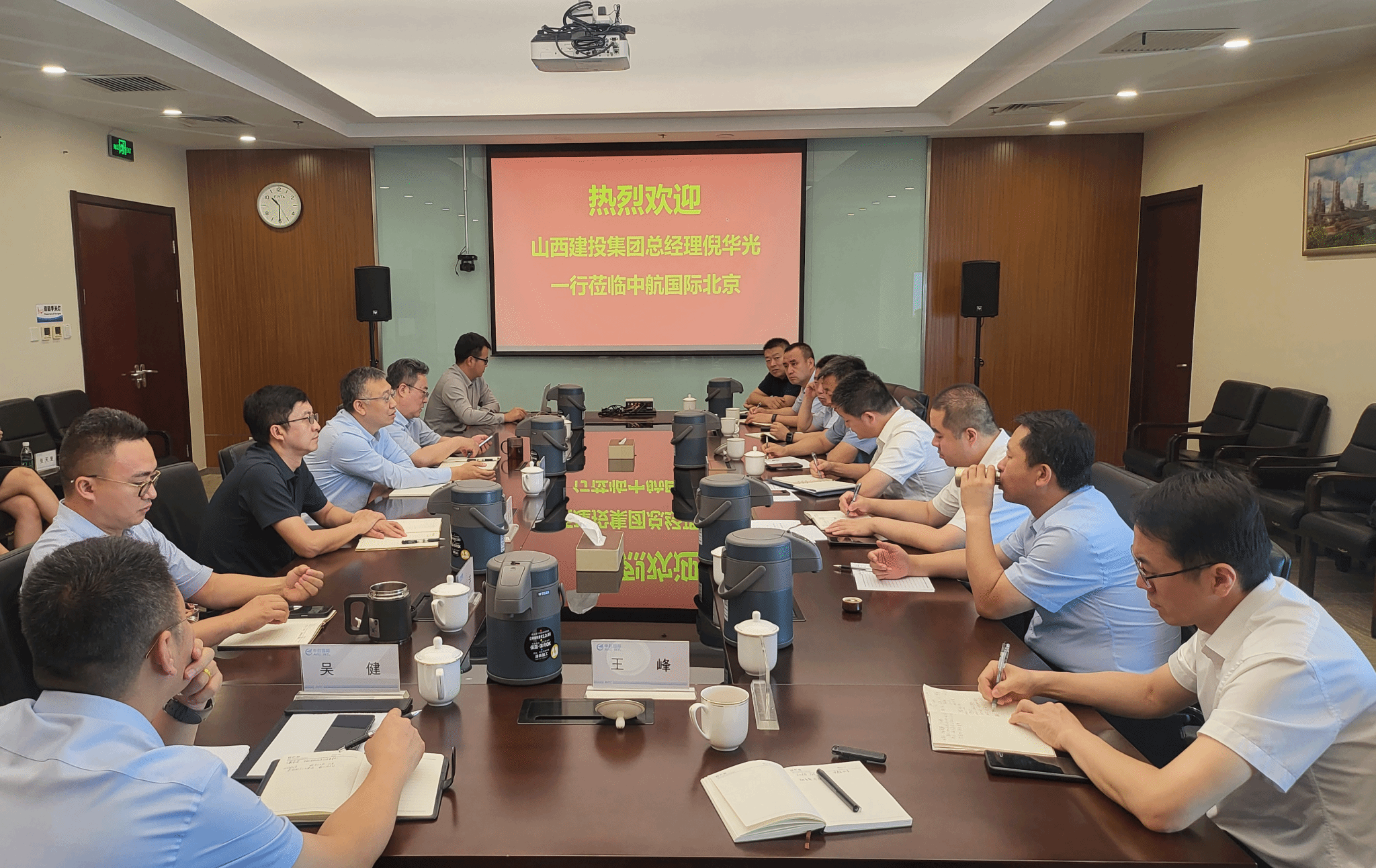 党委副书记、副董事长、总经理倪华光带队在北京市先后与中信资本中国区COO刘墨,中信建设国内区总经理张自强,中国创投联席董事长、CEO刘力,山西省政府驻京办主任董飚,北京山西企业商会会长郎光辉,中国国际医药卫生有限公司党委书记、董事长周颂,中航国际北京公司党委副书记、总经理杨京南,中国中材国际工程股份有限公司党委副书记、总裁朱兵等进行商务洽谈。