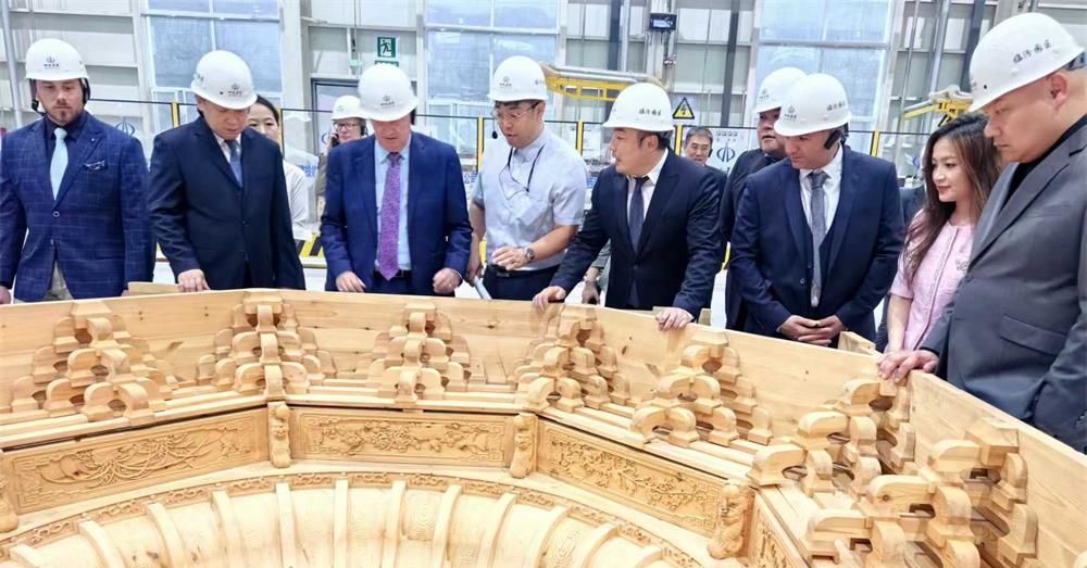在古建营造车间,约翰·基一行参观了木雕、石雕、砖雕、文创产品生产区及非遗大师雕刻区,对临汾园区自主研发的CNC五轴数控加工中心等尖端设备表示肯定。约翰·基说,av线上