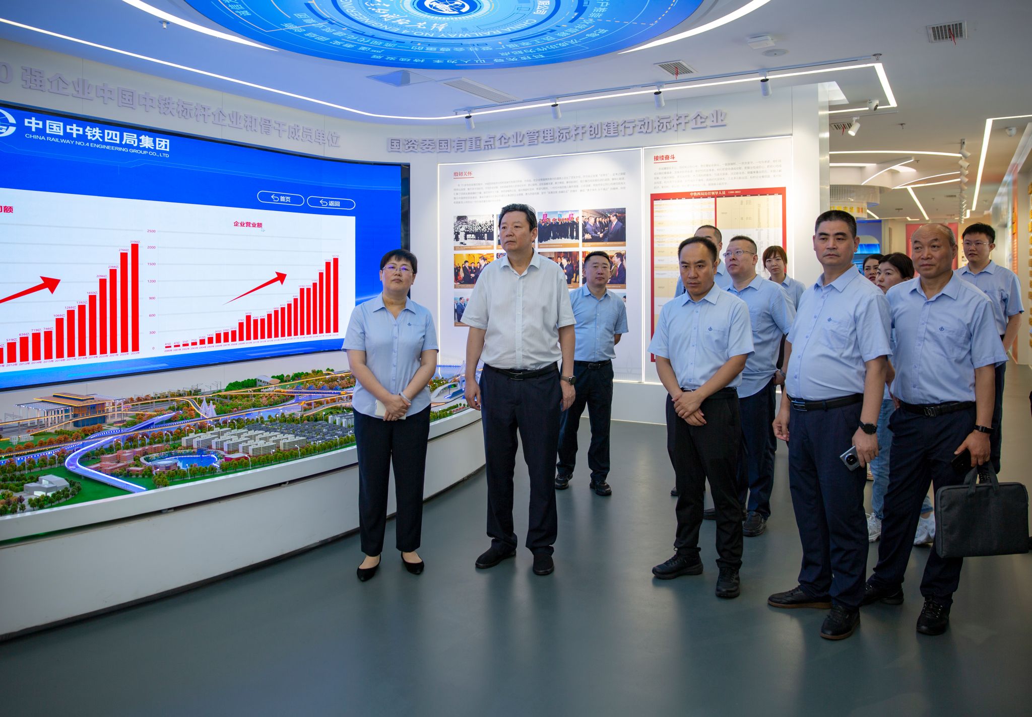 会前,集体参观了中铁四局集团抗美援朝纪念馆、党建文化馆、企业展览馆。此次集团组织市场开发部、生产管理部、法律合规部等11个部门和旗下物贸公司、华东区域总部主要负责人等20余名同志参加对标交流,主要从市场开发、海外业务布局、科技创新、数字化建设、合规管理、成本管控、人才队伍建设、应收账款清收、物资贸易等方面开展点对点、面对面深入交流。