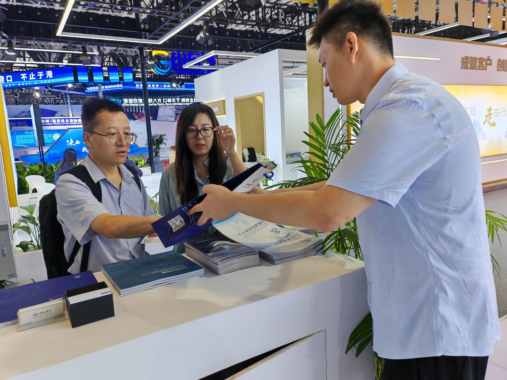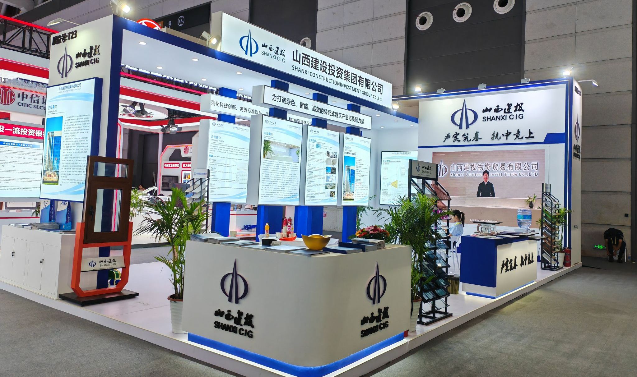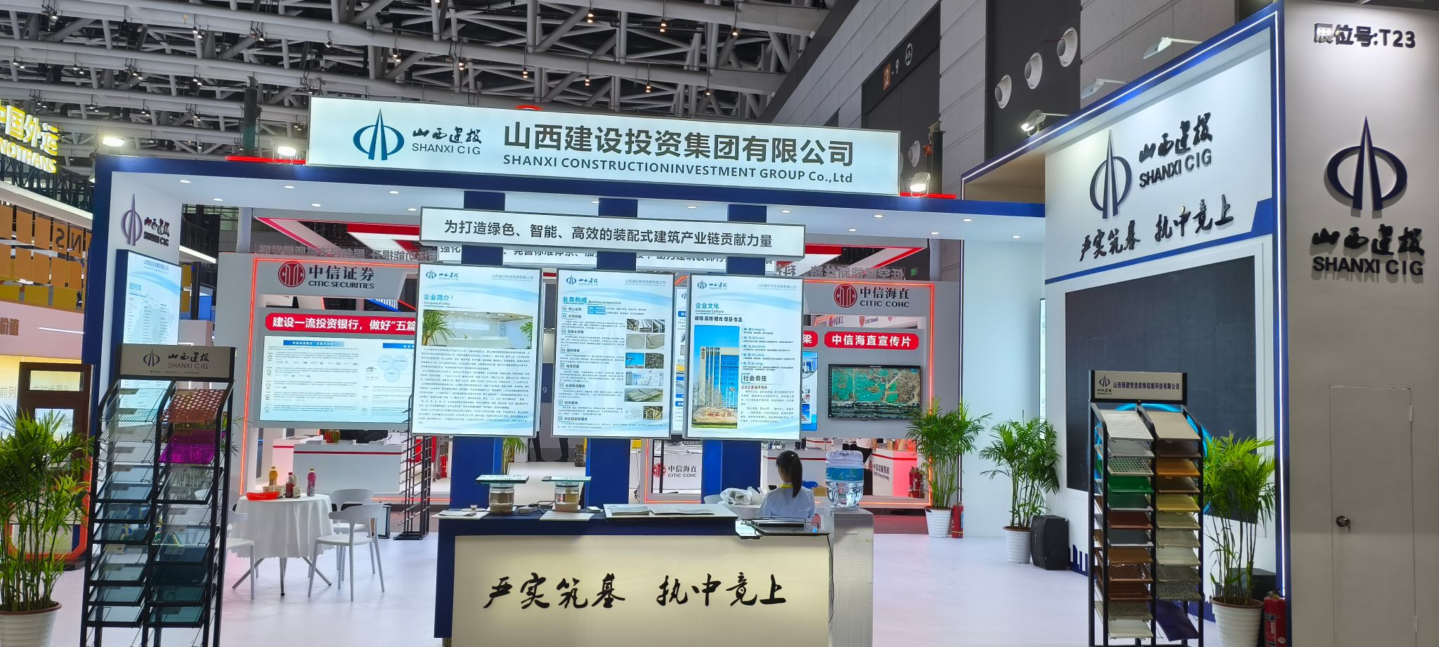 展会现场,建投集团以图文、影像、宣传册等形式,全方位呈现了企业整体形象和全产业链优势,多维度展示了在物资贸易、装配式绿色建材等领域的发展成果和生产产品。展厅吸引了众多专家、客商、嘉宾驻足参观、咨询交流。