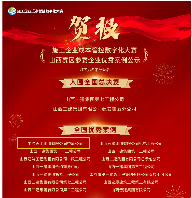 9月25日,施工企业成本管控数字化大赛山西赛区颁奖典礼暨优秀成果分享会在太原成功举办。会上,对全国总决赛入围案例、全国优秀案例及山西赛区优秀案例进行表彰,av线上