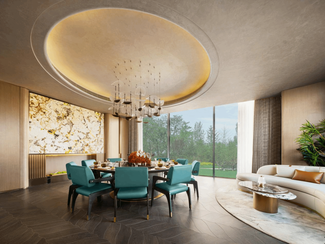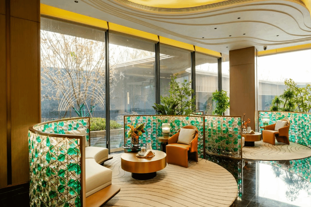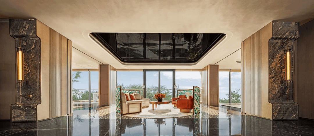 建投·滨河首府营销中心硬装设计在追求美学价值的同时,融入人与自然和谐共生的理念,兼顾环保与可持续性,以观瀑、抱水、行舟、归宇“四境”的空间哲学,成为近年来太原市滨水住宅领域的代表项目。