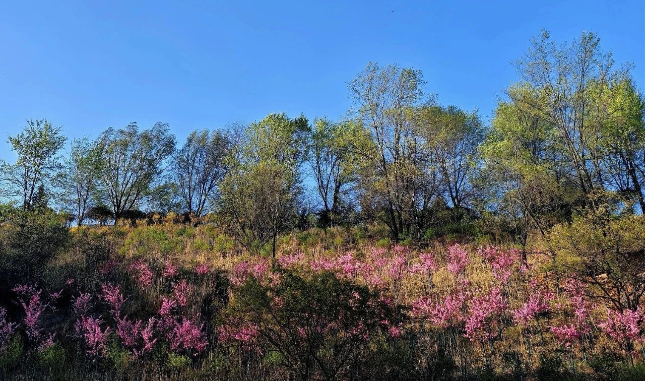 初夏之际,驱车沿和顺天池矿山项目的道路缓缓向上,目之所及皆是惊喜:边坡之上,粉色的樱花、榆叶梅、海棠花与绿色的金叶榆相映成趣;平台之间,白皮松挺拔而立、错落有致。曾经千疮百孔的矿山,正焕发着蓬勃的生命力。