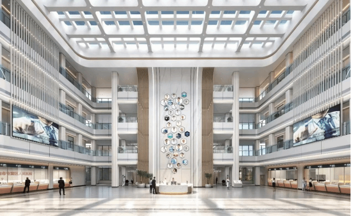 项目设计深度融合绿色、高效、人文三大核心理念,通过系统性技术整合打造现代化医疗空间。建筑主体采用高挑空框架结构,核心区设置四层通高采光中庭与智能调节天窗系统,实现自然光梯度渗透与气流组织优化,显著降低照明能耗。门诊大厅以819平方米的开放式布局形成“医疗街”主轴,通过三维连廊系统有机串联门诊、医技、住院功能板块,实现医患分流与洁污分离。外立面创新采用可呼吸幕墙系统,铝板幕墙与可开启铝合金窗的组合配合弧形倒角设计,形成动态通风效应,整体建筑能耗较传统医院降低15%。