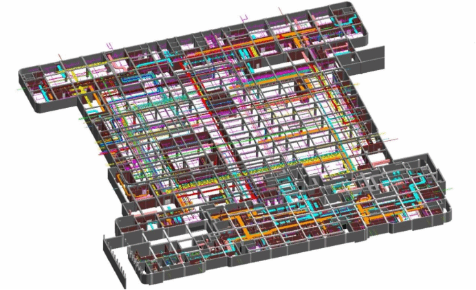 项目团队充分发挥EPC总承包的全过程管控优势,在设计阶段即实施精益管理创效。通过组建“设计+施工”联合工作组,运用BIM技术开展全专业协同设计,累计优化解决图纸问题近200处,实现设计施工一体化融合,直接降低施工变更成本1.3%,缩短工期26天。针对医疗建筑特有的复杂机电系统(涵盖给排水、消防、智能化、医疗气体等9大专业),采用“BIM+模块化”施工策略,先通过三维激光扫描建立实景模型,再运用BIM技术进行管线综合排布优化,最终形成装配式施工方案。该方案使管综净空提升0.6米,管线交叉点减少12.5%,实现有限空间内各系统的高效集成与艺术化呈现,提高机电工程一次安装合格率。