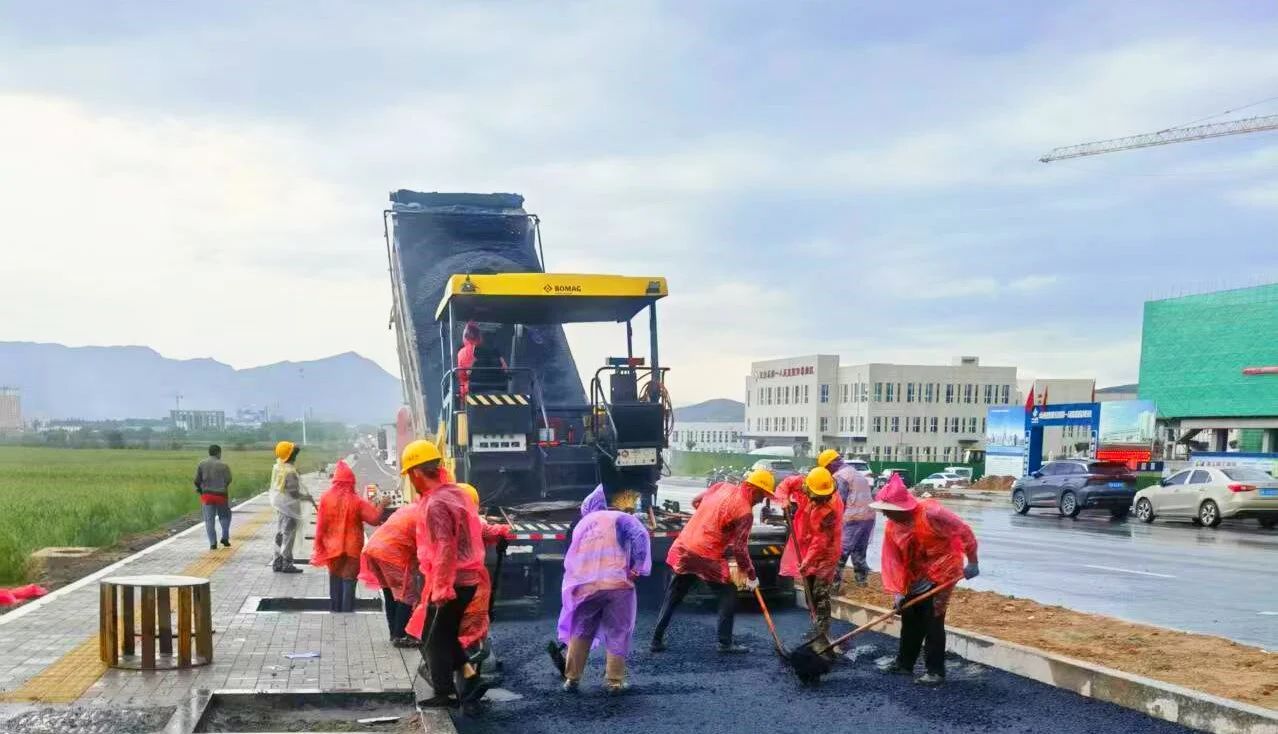 工程质量是项目的生命线。在至关重要的沥青路面摊铺阶段,项目遭遇了连续7天的阴雨天气,严重威胁施工质量和进度。项目团队迅速反应,紧急调集8台大型吹水烘干设备,组织50名工人轮班作业,争分夺秒抢抓作业窗口。“那段时间,工装都能拧出水,但检测报告上98.7%的压实度、1.2毫米的平整度误差,让所有辛苦都有了意义。”项目经理说道。在细节处理上,团队推行“毫米级”管理:路缘石安装误差控制在3毫米以内,检查井周边采用“钢筋网+膨胀混凝土”加固工艺,有效避免沉降开裂。竣工验收数据显示,项目路面抗滑性能、结构强度等18项指标全部优于设计标准,其中标线合格率达100%。
