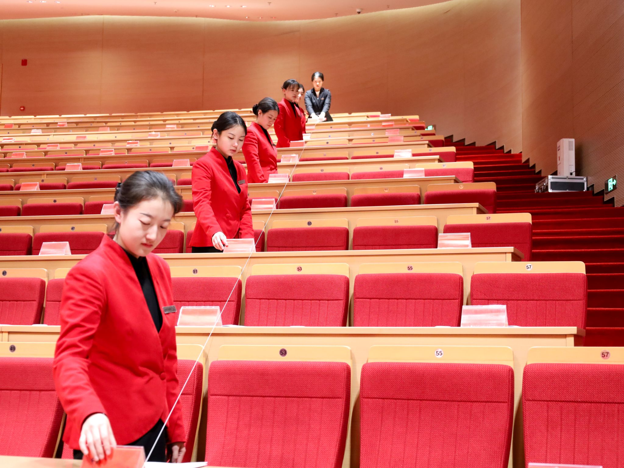 在应急响应上,2024年夏季一场峰会期间突遇暴雨,服务团队20分钟内调集资源,在连廊入口铺设防滑地毯,手持大号雨伞组成“移动长廊”,第一时间为参会者送上雨伞;同年汾酒全球经销商大会中,仅用28分钟完成从全体会议到桌餐的场地转换,圆桌、椅子、桌牌、餐具全部按照新布局精准就位,连茶杯把手方向都保持一致,展现了团队快速高效的应急服务能力,得到了与会人员的一致好评。