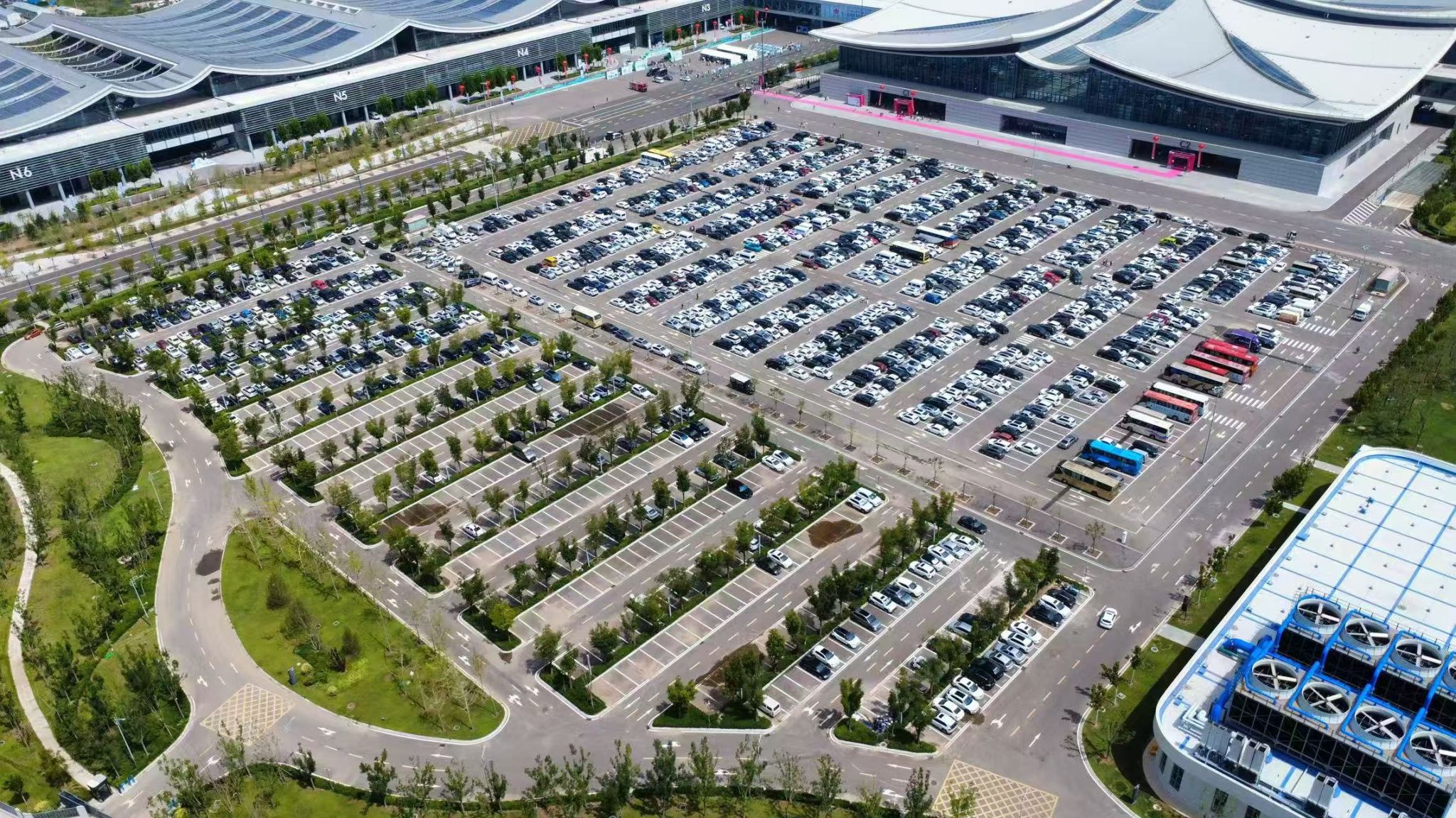 在交通保障方面,团队密切关注天气变化与实时客流,动态优化现场管理。针对雨天停车场距离较远的问题,立即开放展馆周边6处备用临时停车场,新增停车位4000余个,与综改区交警支队建立联动机制,增派工作人员在停车场入口及展馆周边重点路口协助交警引导车辆。通过规划临时装卸货专用区域与通行路线,有效保障了参展车辆与社会车辆的顺畅通行,确保了展品运输高效有序,最大限度缓解了展会期间的交通压力。