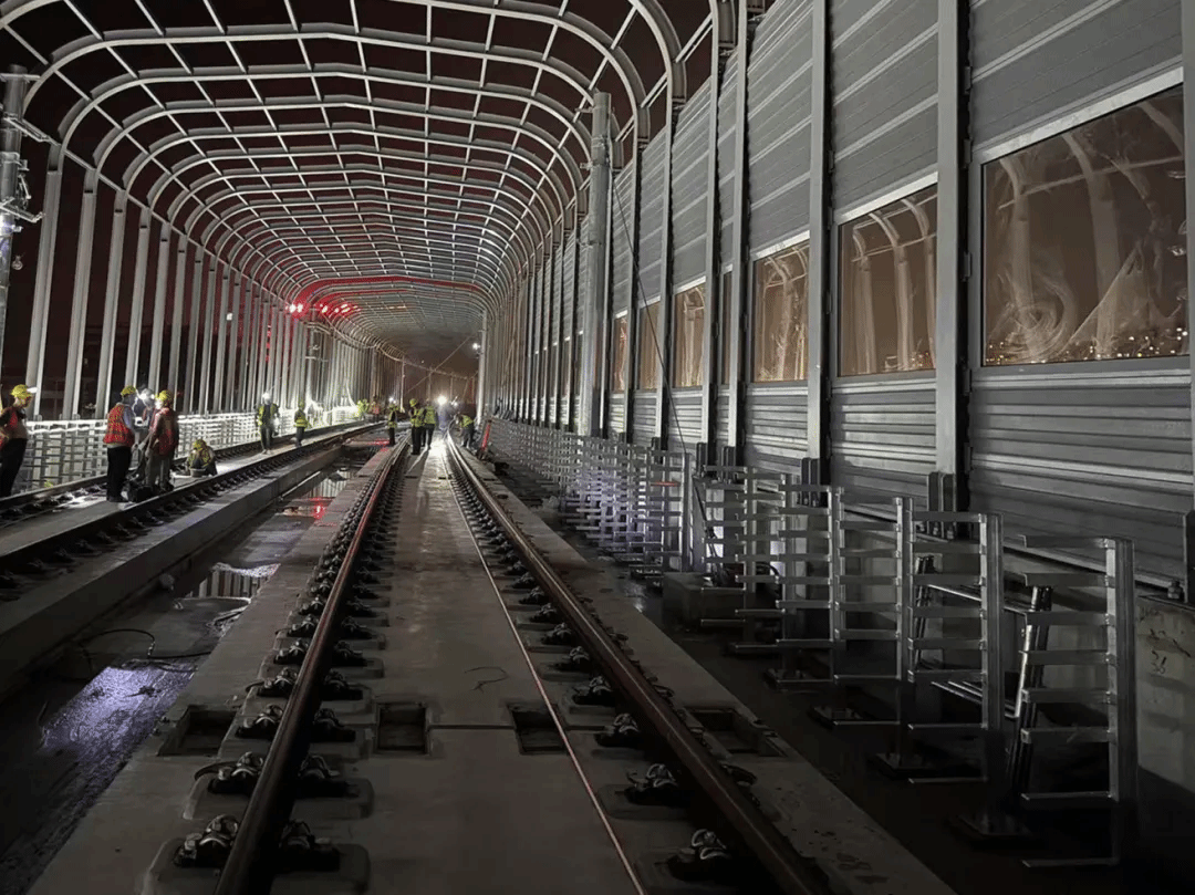 施工期间,项目团队灵活调整作业时段,严格遵守高温、夜间安全施工要求,合理安排人员作息时间,同时科学排布施工计划和工序,对吊装、登高等作业进行前置条件核查,对施工内容进行功能性和侵限风险检测,严把安全质量关,满足要求后方可施工。最终按照节点完成区间照明点亮,射流风机启动,雨废水泵房抽排、相关区域送电等各项功能,为列车上线热滑提供了坚实保障。