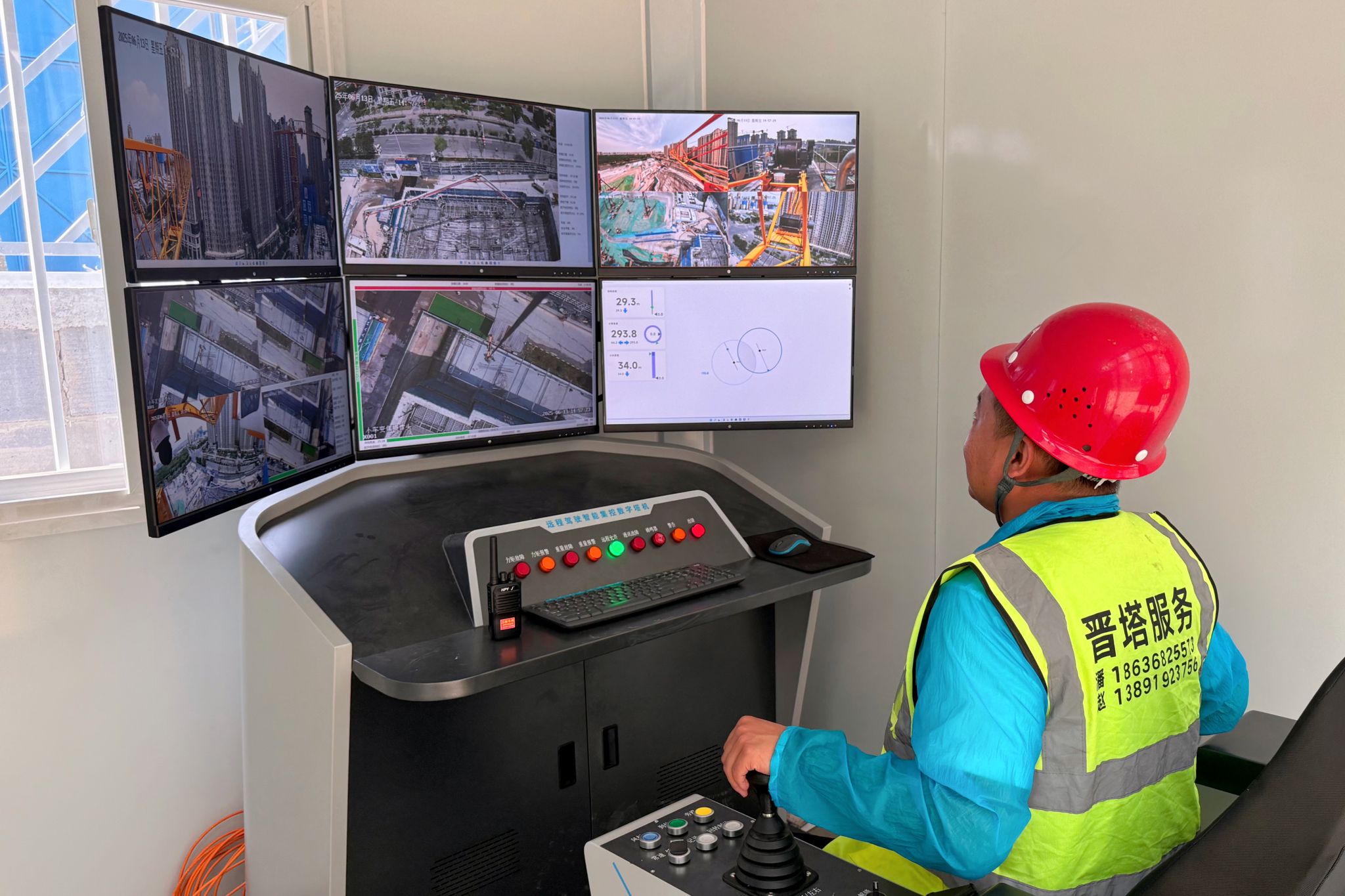 在西安市璞逸东方商住综合体项目中,该技术的优势展现得淋漓尽致:面对多栋楼体同步施工、精细吊装与高效作业并存的需求,塔机司机可根据不同施工需求灵活选择操作模式。在吊装精度要求极高的住宅楼梯预制板时,可在地面5G集控舱内,通过曲面大屏清晰观察数十米高空的构件对接过程,实现精准安装;而在吊装商业楼轻质建材时,则可切换至高空驾驶舱操作,有效提升作业效率。两种模式数据实时同步,在切换作业楼体时,塔机的力矩、幅度等参数可快速自适应调整,省去重复调试环节,使单楼吊装效率提升15%以上。