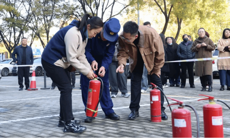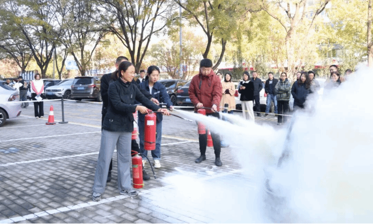 培训结束后,实战演练随即启动。随着模拟火灾警报声急促响起,参训人员在教官的专业指导下,迅速用湿毛巾捂住口鼻,保持弯腰低姿状态,沿预设疏散路线快速、有序向室外撤离,全程无拥挤、无慌乱,均安全抵达指定集合点,圆满完成疏散演练任务。在后续灭火实战环节,教官再次示范灭火器“提、拔、握、压”四步标准操作法,强调操作过程中的安全注意事项;随后参训人员分组上阵,亲身参与火源扑救实操,在实践中熟练掌握灭火技能,有效提升初期火灾处置能力。