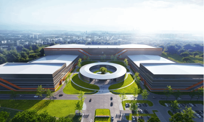 在技术难度极高的长治高新区锂电产业园制造基地项目,挑战前所未有:近40米高的单层厂房、38米的大跨度钢结构、3000平方米的圆形曲面玻璃幕墙……传统施工方法难免捉襟见肘。
