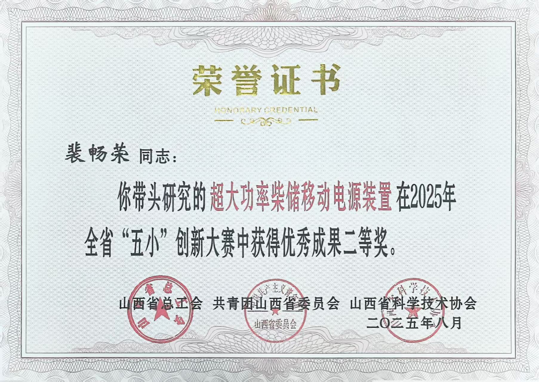 在装置研发迭代过程中,技术团队针对首版样机储能容量不足的问题,优化调整电池组配置,改进充放电控制逻辑,规避了停电与恢复供电时需手动操作的不便,实现了该环节的自动化、智能化管控。升级后的超大功率柴储移动电源装置可满足6台大型打桩机同时作业,彻底消除跳闸现象;同时,将设备运行噪音从100分贝降至55分贝,达到居民区夜间噪音标准;此外,成功将装置柴油消耗量降低20%,每月节省燃油费用5.5万元。这项创新成果不仅高效解决了项目施工中的实际难题,还荣获省级“五小”创新大赛二等奖,为后续在同类工程中推广应用奠定了坚实基础,让绿色低碳成为企业科技竞争力的鲜明标识。
