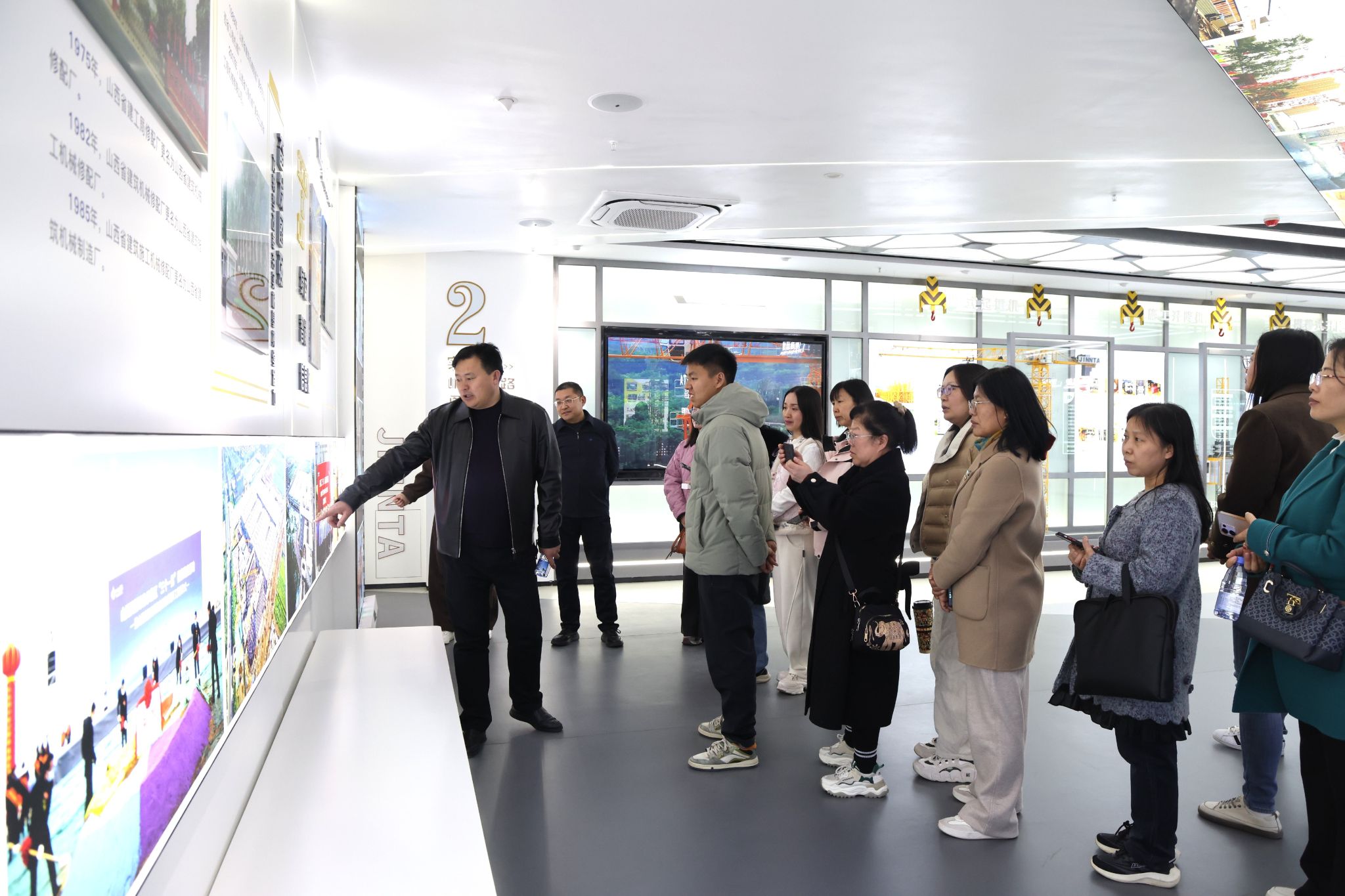 专题培训会上,工程机械公司总工程师李碧玉向教师代表团系统介绍了公司传统主营产品塔式起重机和施工升降机的分类、整机组成、技术参数、智能化应用等,分享了公司在智能化、绿色化生产领域的实践突破。工程机械智能建造公司总经理王正伟围绕建筑机器人、消防机器人、车载机器人等公司全品类智能装备作了专题分享,对公司智能产品特性、技术亮点、应用场景等进行详细介绍。教师代表团参观了av线上展厅,全面了解工程机械公司av线上、主营产品、市场布局等情况,同时他们走进智能化联合厂房、智能产品展示区,近距离观摩塔式起重机片式标准节生产线和智能粉末涂装线,沉浸式了解和体验消防职守机器人、火眼视频图像早期火灾报警系统、建筑机器人等系列智能产品。