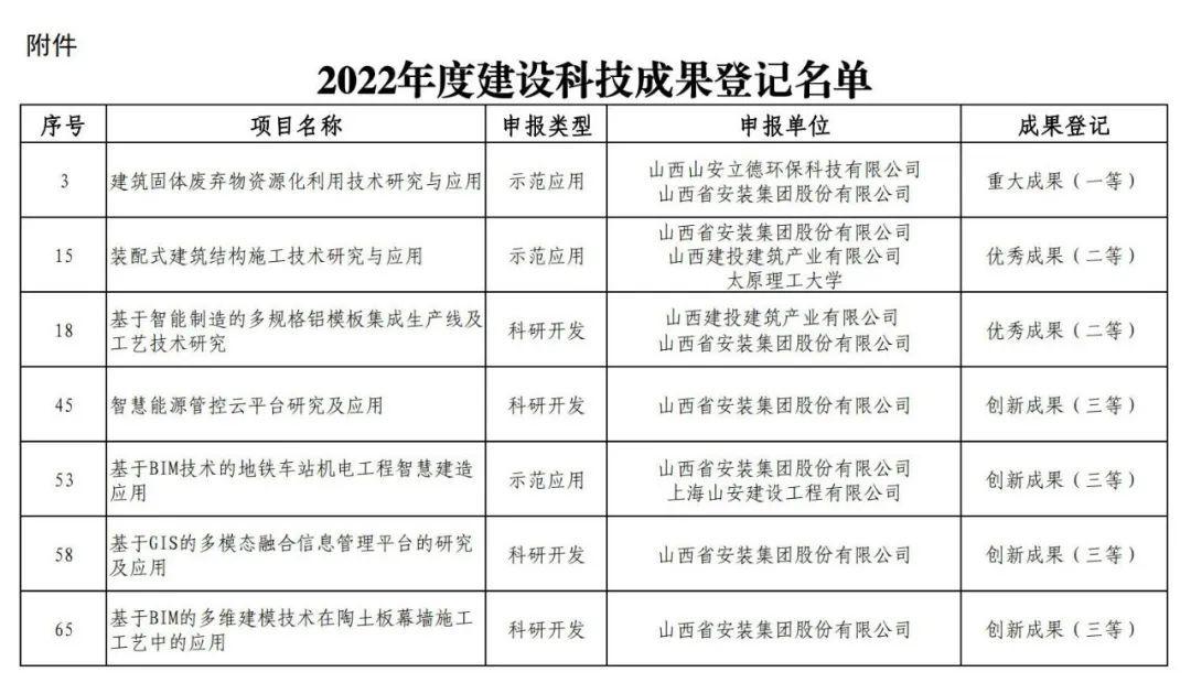 山西省住房和城乡建设厅组织省内外行业权威专家,采取“现场+视频”形式,对安装集团申报的七项建设科技成果进行了评估。评估委员会听取了项目汇报,审阅了相关资料,经质询讨论,认为该七项成果符合《山西省住房和城乡建设厅关于开展建设科技成果登记工作的通知》和《山西省住房和城乡建设厅关于做好建设科技成果登记工作的通知》要求,3项达到国内领先水平,4项达到国内先进水平,评估通过,建议准予登记。