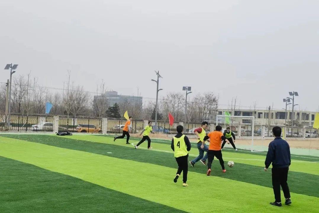 新建足球场可满足5人制训练及比赛使用,场面用水泥硬化后全面铺设了绿色人造草坪,黄绿相间的草坪,鲜艳醒目的标线,开阔平坦、高端大气、舒适安全,成为职工室外锻炼的又一优雅场所。