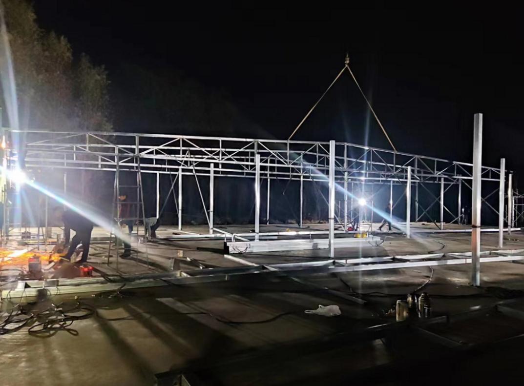 集团接到忻州市级方舱医院建设任务后,闻令而动,迅速统筹解决人员、材料、机械设备等,以最短的时间集结精干队伍400余人,以最快速度奔赴忻州市执行方舱医院建设任务。面对时间紧、任务重,全体参建人员发扬特别能吃苦、特别能战斗的拼搏精神,严格执行24小时轮班制,分区域、分组协同连续奋战,确保现场不停工,提速再提速。