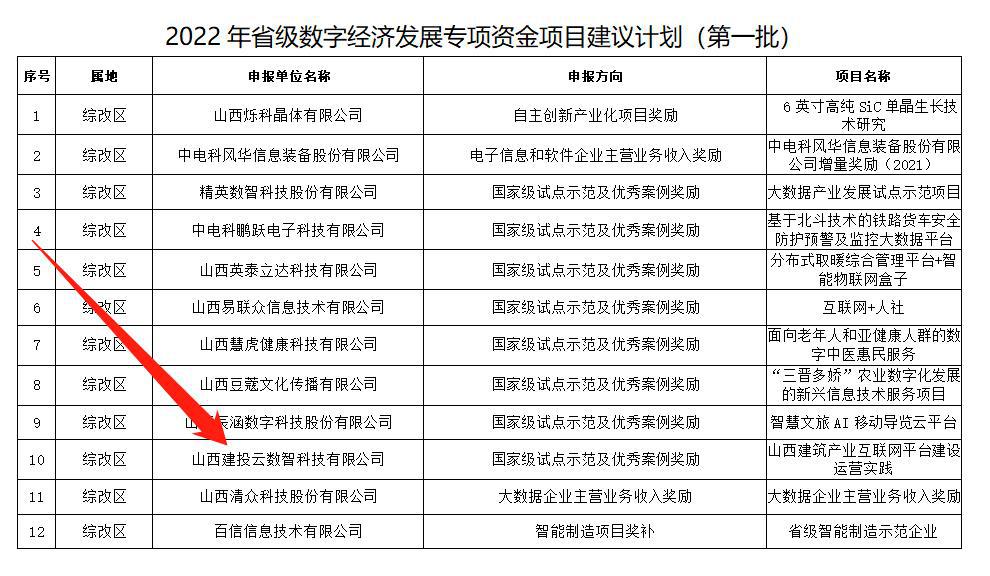 近日,从省工业和信息化厅获悉,山西建投云数智科技有限公司数字经济项目“山西建筑产业互联网平台建设运营实践”通过专家组评审,获国家级试点示范优秀案例奖励,获得省级数字经济发展专项资金(第一批)支持。