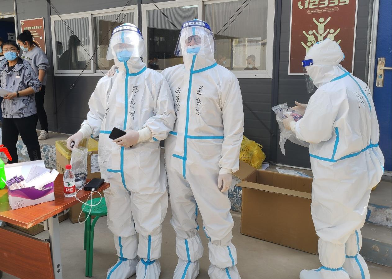 他们身穿防护服,化身“大白”,奔走在综改区唐槐园综合楼项目、唐槐园三期、唐槐园四期一标、唐槐园四期二标、太重新能源装备项目、安泰信项目、管委会停车场项目、旅游学院项目、公交停保场项目等核酸检测现场,协助医护人员进行人员身份确认、信息统计、核酸检测扫码登记、维持核酸检测现场秩序等,得到了项目人员和综改区建管部的一致好评。