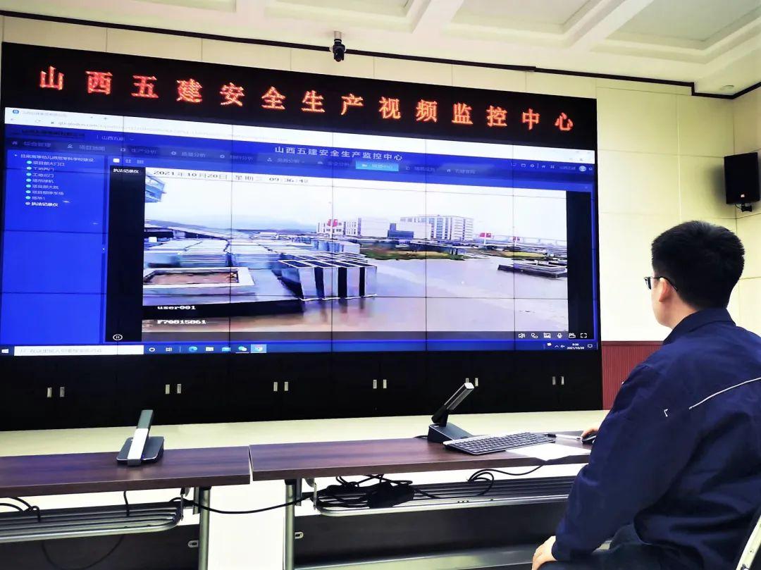 郭鹏飞是项目上的安全员,每日班前会后,他都会拿着巡检设备,对现场进行安全巡查,检查防护用品、消防器材、临时用电、临边防护、机械设备、操作平台等是否符合要求。此时,公司总部安全生产监控中心吴安伟正通过监控大屏幕查看着郭鹏飞手中巡检仪器传回的项目现场实时画面,通过这样的方式,总部能够第一时间发现项目安全隐患并立即做出反应,为项目安全员提供实时指导和技术支持。