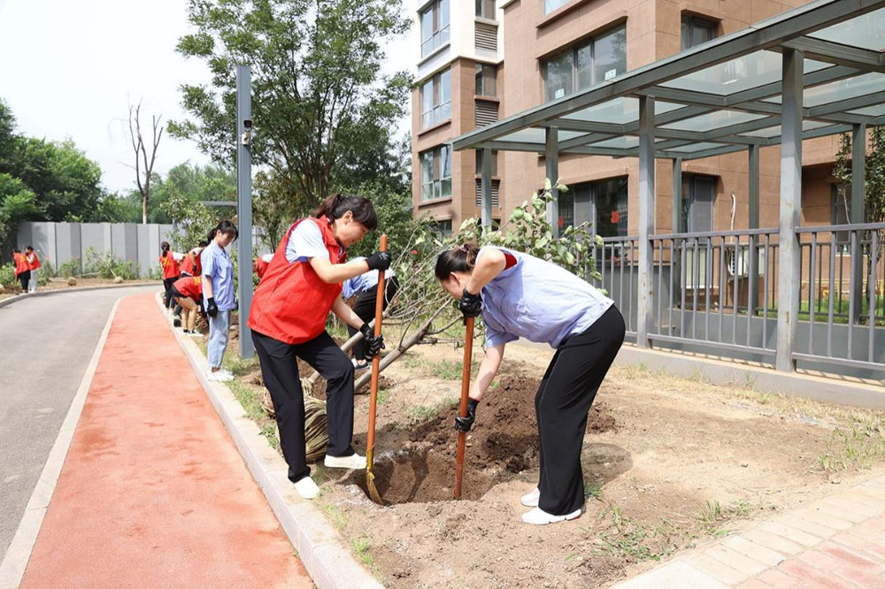 活动中,职工子女与家长拿着铁锹、水桶等工具,挖坑、填土、浇水,共同完成了树苗的栽种,挂上印有自己姓名的树木标识牌并在树前合影。职工子女与家长共同栽种下一颗颗希望之树,寓意在今后的求学、工作与人生道路上百尺竿头,取得更大的成功,同时也通过子女与家长近距离的交流互动,感恩父母“育树成才”之辛。
