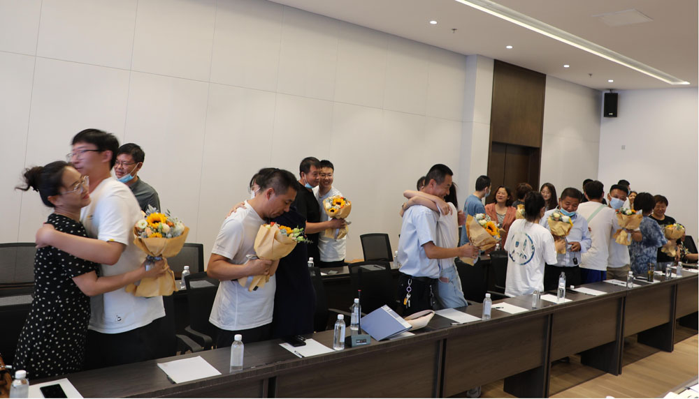 公司还特别设计了向父母献一束鲜花、给一个拥抱环节,让职工子女用行动表达对父母的爱,表达感谢父母养育教导之恩,让亲情在心与心之间流淌。