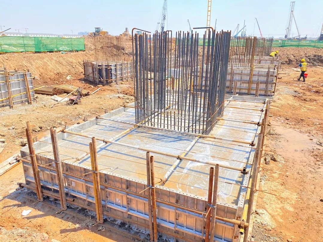 根据工程特点难点,项目部编制出各项技术攻关课题清单,如在前期基础承台施工过程中,通过采集各种模板信息数据,对比、分析性价比,最终选择了铝合金模板,不仅保证了工程质量,还加快了施工进度,在群体工程建设中获得了良好经济效益。