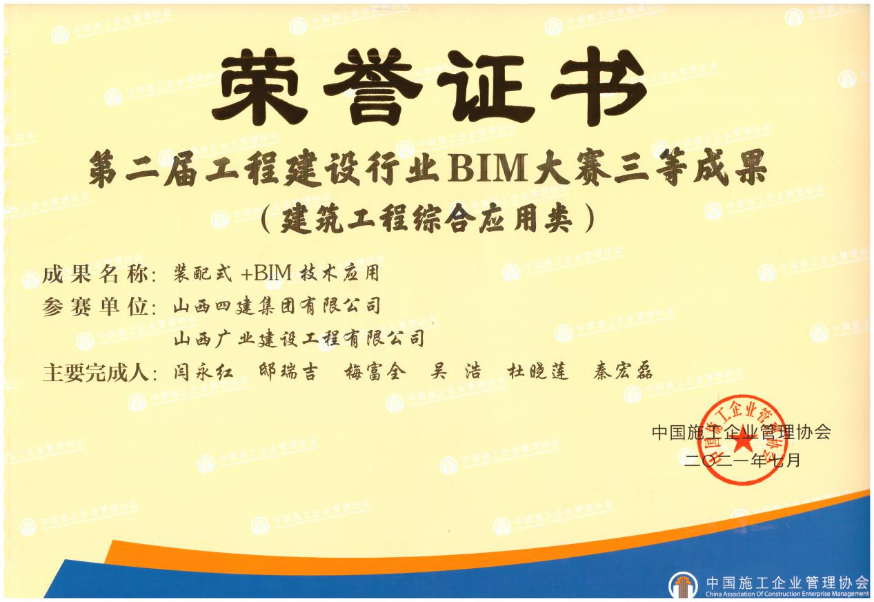 近日,中国施工企业管理协会公布了2021年度第二届工程建设行业BIM大赛获奖名单。国道G342晋城过境段改线工程项目《丹河特大桥BIM技术研究与应用》荣获二等成果(交通工程类),山西基因诊断与药物研发基地项目《装配式+BIM技术应用》荣获三等成果(建筑工程综合应用类)。