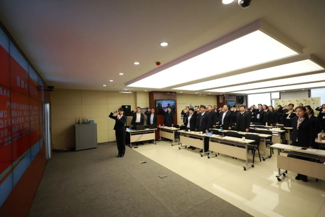 在本期道德讲堂结束之前,广大职工举起右拳,在会场上郑重承诺:严格遵守公民道德基本规范,做到爱国守法、明礼诚信、团结友善、勤俭自强、敬业奉献,牢固树立社会主义核心价值观,严格贯彻落实公司“12368”战略行动方针,坚持打造“讲诚信、善合作、重品质、有激情”的建工品质,为公司高质量发展聚力赋能!
