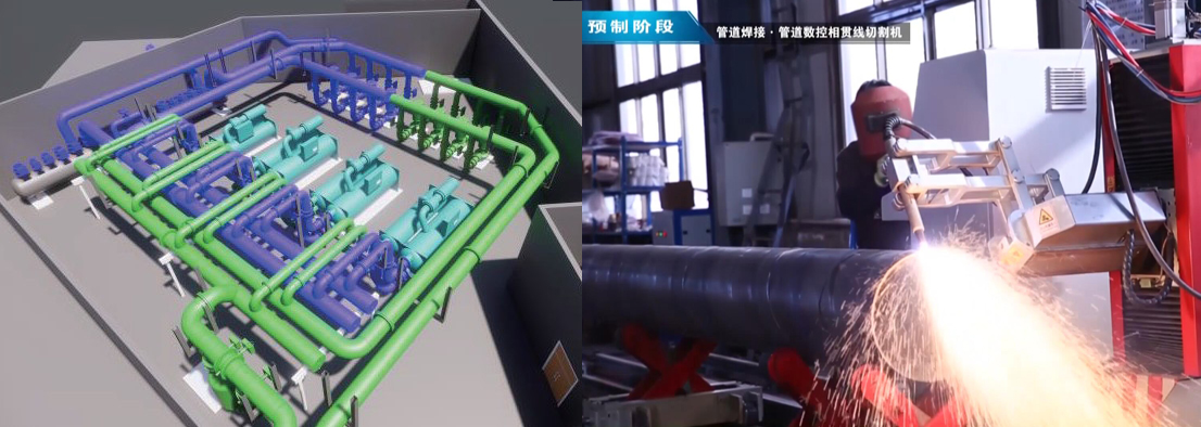 公司在承建的太谷县职业中学设立了机电管线智造基地,基地集BIM深化设计和装配制造于一体的机电数字化智能生产,致力于打造BIM+装配式机电服务新模式。将管线工程按照模块化、集成化方式,从设计、生产到安装和调试深度结合集成达到数字建造,从而实现建筑机电安装数字化、信息化、标准化、产品模块化及集成化,达到降本增效,实现建筑机电安装全过程绿色施工的目标。
