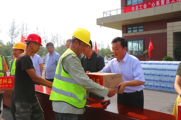 在职教港项目工程建设现场,调研组听取了工程建设情况汇报,为项目部一线职工分发了防暑降温等慰问品。郝向明关切地询问大家的生活状况和工作情况,并叮嘱项目负责人务必高度重视一线职工的防暑降温,在做好常态化防疫工作的同时,更加科学合理地安排好作息时间应对高温天气,确保工友们的身体健康和工作安全;在龙城大街区域路网建设项目工程建设现场,调研组详细了解各个项目规划和建设进度,协调解决了工程推进中的难点堵点。