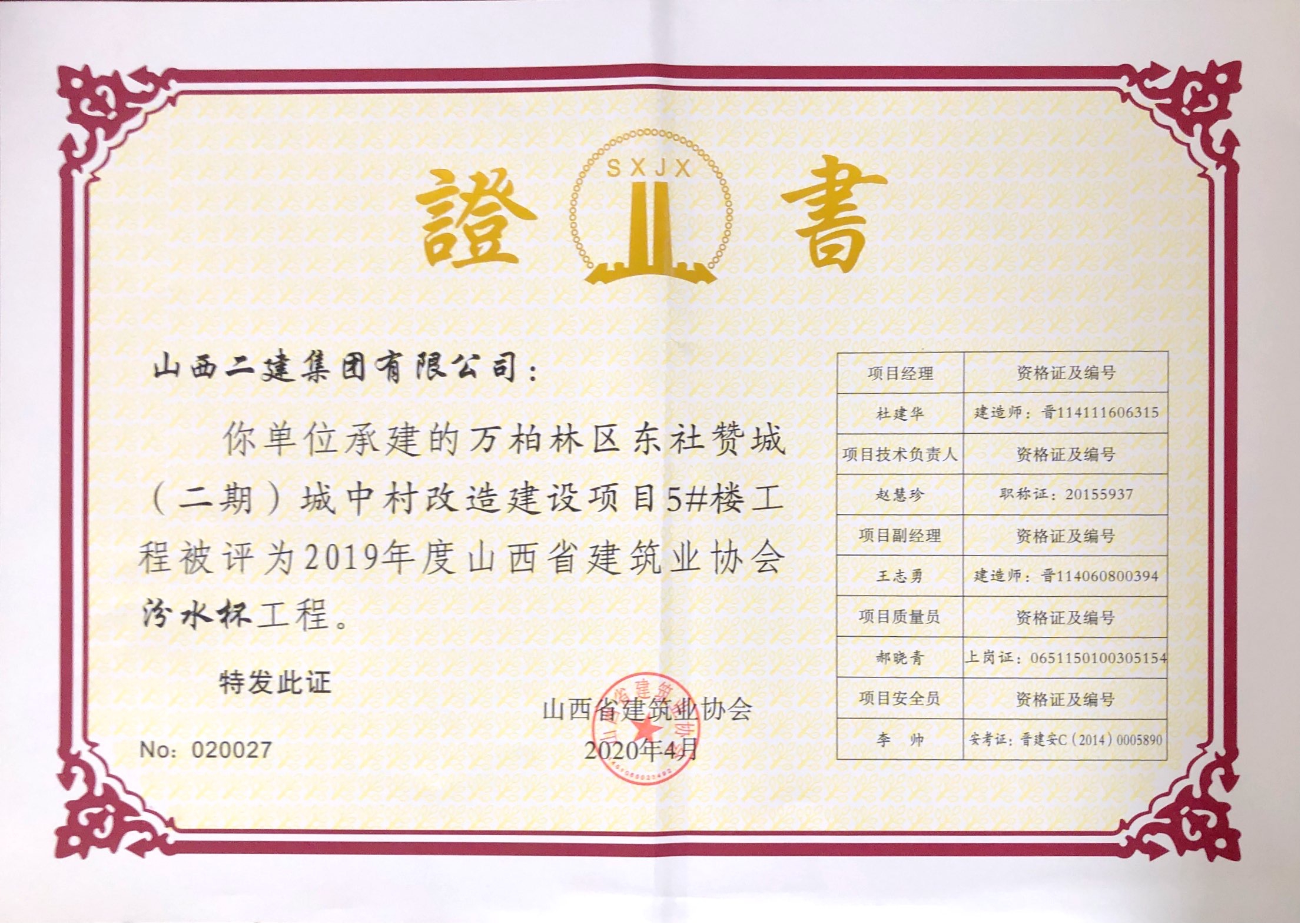 近日,山西省建筑业协会公布2019年度山西省建筑业协会“汾水杯”工程评价名单,由公司承建的5项工程荣获“汾水杯”工程。这是公司首次同一年度获得5项“汾水杯”,同时也是2019年度山西省获得该荣誉最多的企业。