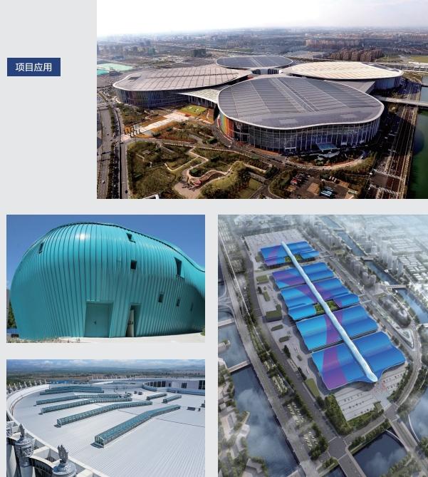 铝镁锰屋面是以铝镁锰合金为原材压制的特殊屋面系统,具有使用寿命长、环保美观、安装方便快捷、耐腐蚀、重量轻、强度大、容易加工成型等优点,同时可结合冲孔吸音构造实现较高要求的建筑功能,且可通过正反弯弧、扇形板等特殊加工方式实现复杂曲面效果,广泛应用于机场航站楼、飞机维修库、车站及大型交通枢纽、会议及展览中心、体育场馆、展示厅、大型公共娱乐设施、公共服务建筑、大型购物中心、商业设施、民用住宅等建筑。