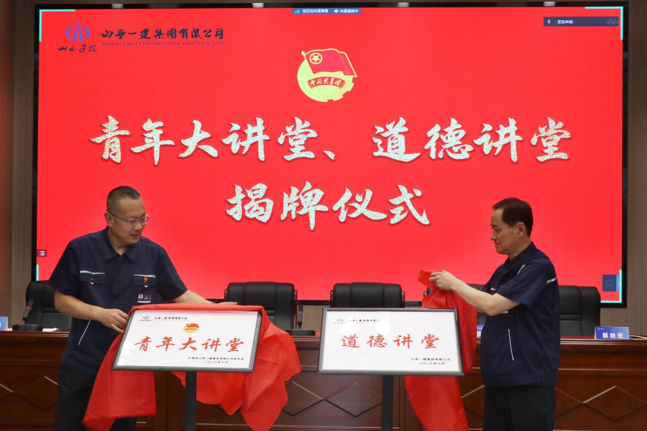 近日,山西建投一建集团组织开展青年大讲堂、道德讲堂揭牌暨“感受榜样力量 争做‘四好’青年”主题团日活动。一建集团党委专职副书记张立平,党委委员、总工程师、工会主席刘晖共同为青年大讲堂、道德讲堂揭牌。