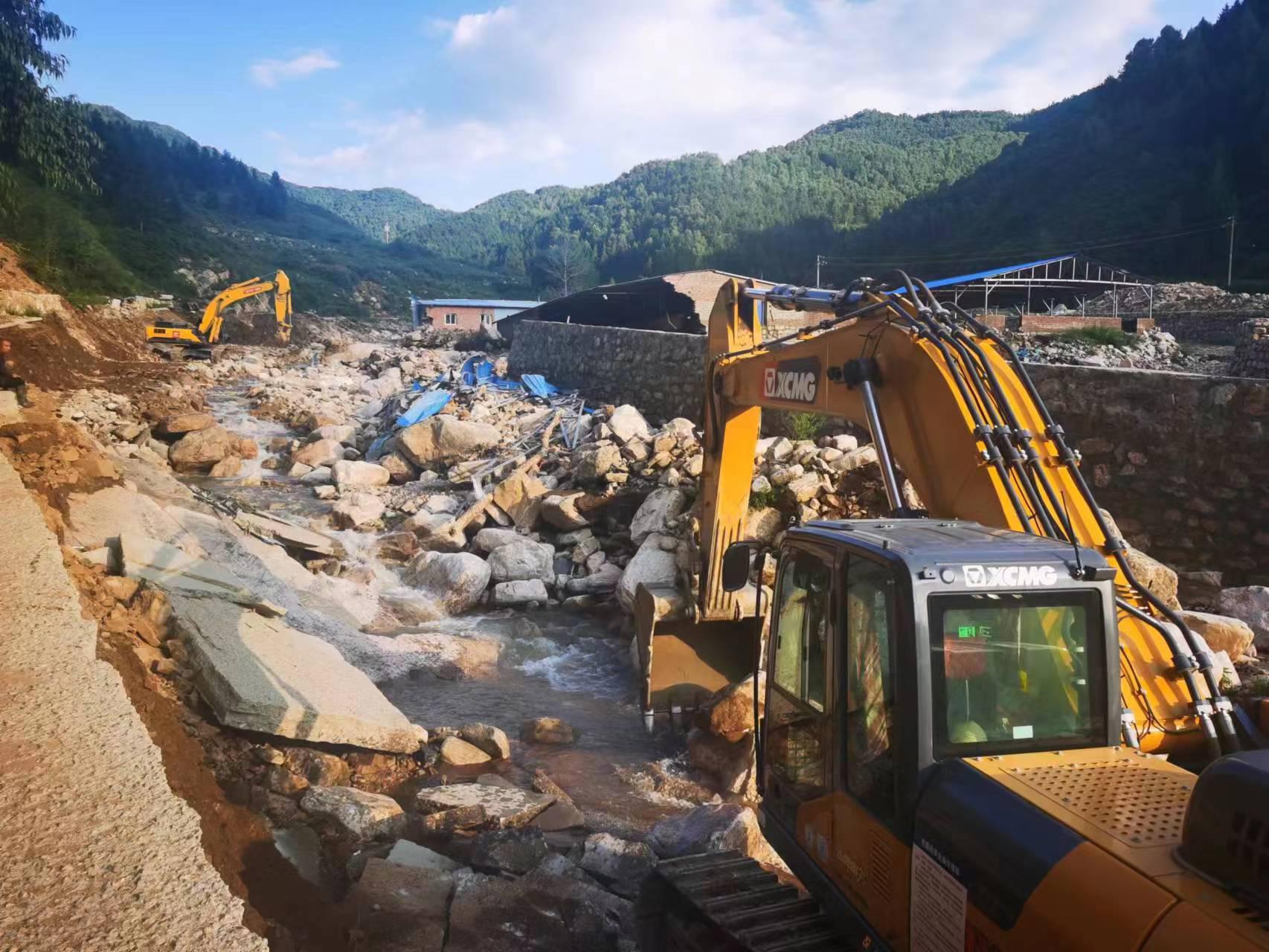 项目40余名管理人员及工人迅速组建了应急救援队及抢险车队,配备无人机、发电机、铁锹、水泵、挖机、渣土车等设备,连夜前往五台山南麓的门限石乡狐峪口村,投身抗洪救灾一线。项目公司主动对接五台县政府,配合统一调度,积极参与抗洪抢险任务,处理路面倒伏树木、抽排路面积水、清理路面淤泥与河道杂物,帮助地方快速恢复道路畅通。在确保安全的前提下,四建人冲锋在前面,战斗在一线,始终保持高度的责任心,全身心投入到抗洪抢险工作中,做到险情早发现、早处置,为夺取抗洪抢险最终胜利奠定坚实基础。