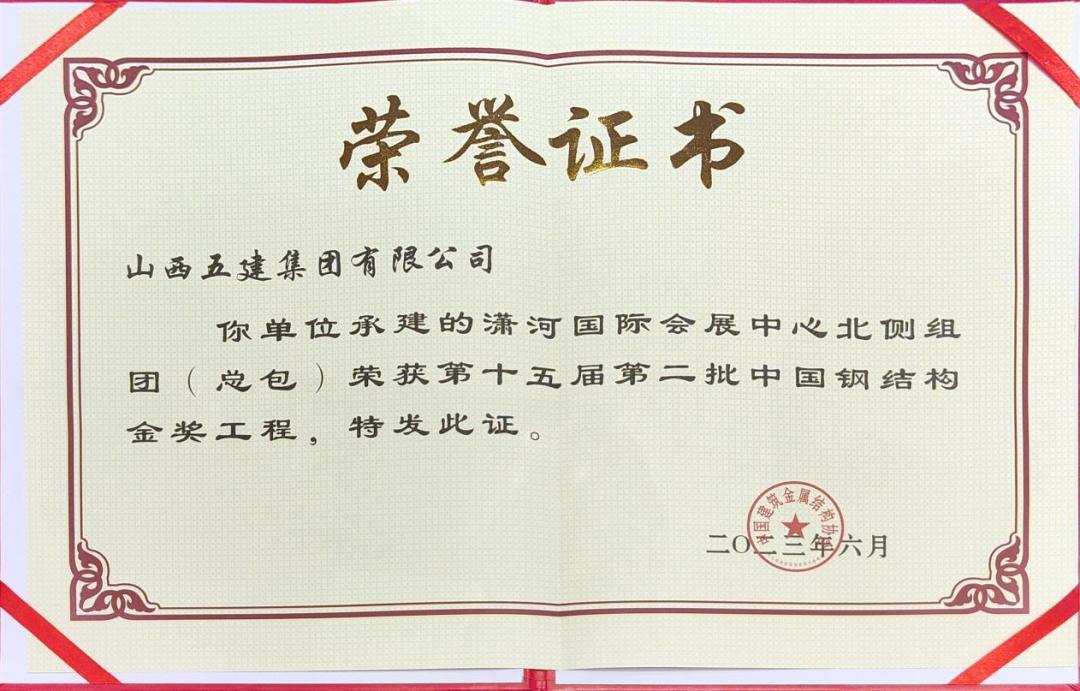 潇河国际会展中心北侧展厅是山西省首个大型、重型展馆,其建筑结构造型与艺术深度融合,彰显了三晋地域文化,是山西省地标性建筑。该工程的建成,使山西具备了举办国际性大型、重型展会的能力,成为山西对外开放、走向世界的一条通道。再次斩获中国建筑钢结构行业工程质量最高荣誉,充分展现了五建集团在钢结构领域的专业水准和市场竞争实力。五建集团将以“中国钢结构金奖”荣誉为新起点,进一步提升施工管理水平、加强技术创新应用,始终践行国企责任和担当,以科技赋能,创造精品工程,为山西高质量发展做出新的更大贡献。