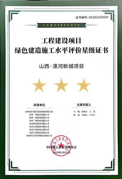 日前,中国施工企业管理协会公布2022年第二批工程建设项目绿色建造施工水平评价结果,山西·潇河新城荣获最高等级“工程建设绿色建造施工水平三星评价”。