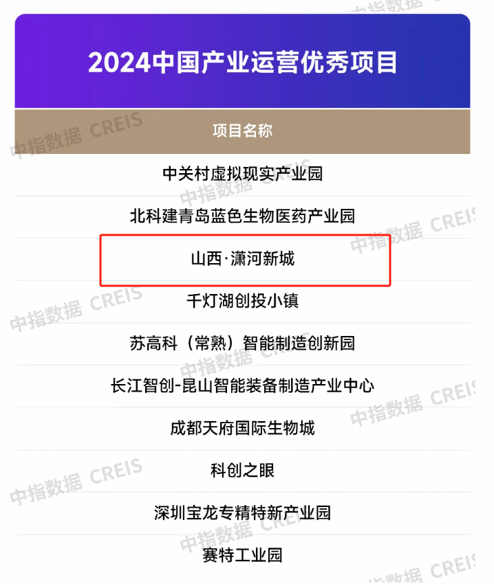 山西·潇河新城荣获“2024中国产业运营优秀项目”殊荣