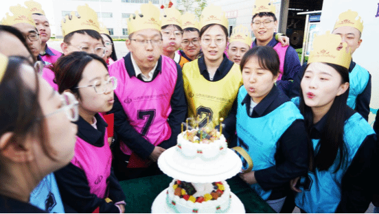 紧张而有趣的运动会结束后,公司举行了一场温馨而感人的集体生日会。