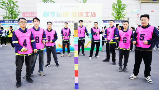 此次趣味运动会设置了团体跳绳、无敌风火轮、时空隧道、步步高升4个项目,来自各基层单位的80余名职工分小组进行比赛。运动会现场,大家精神焕发、活力四射,助威声、加油声、欢笑声此起彼伏。