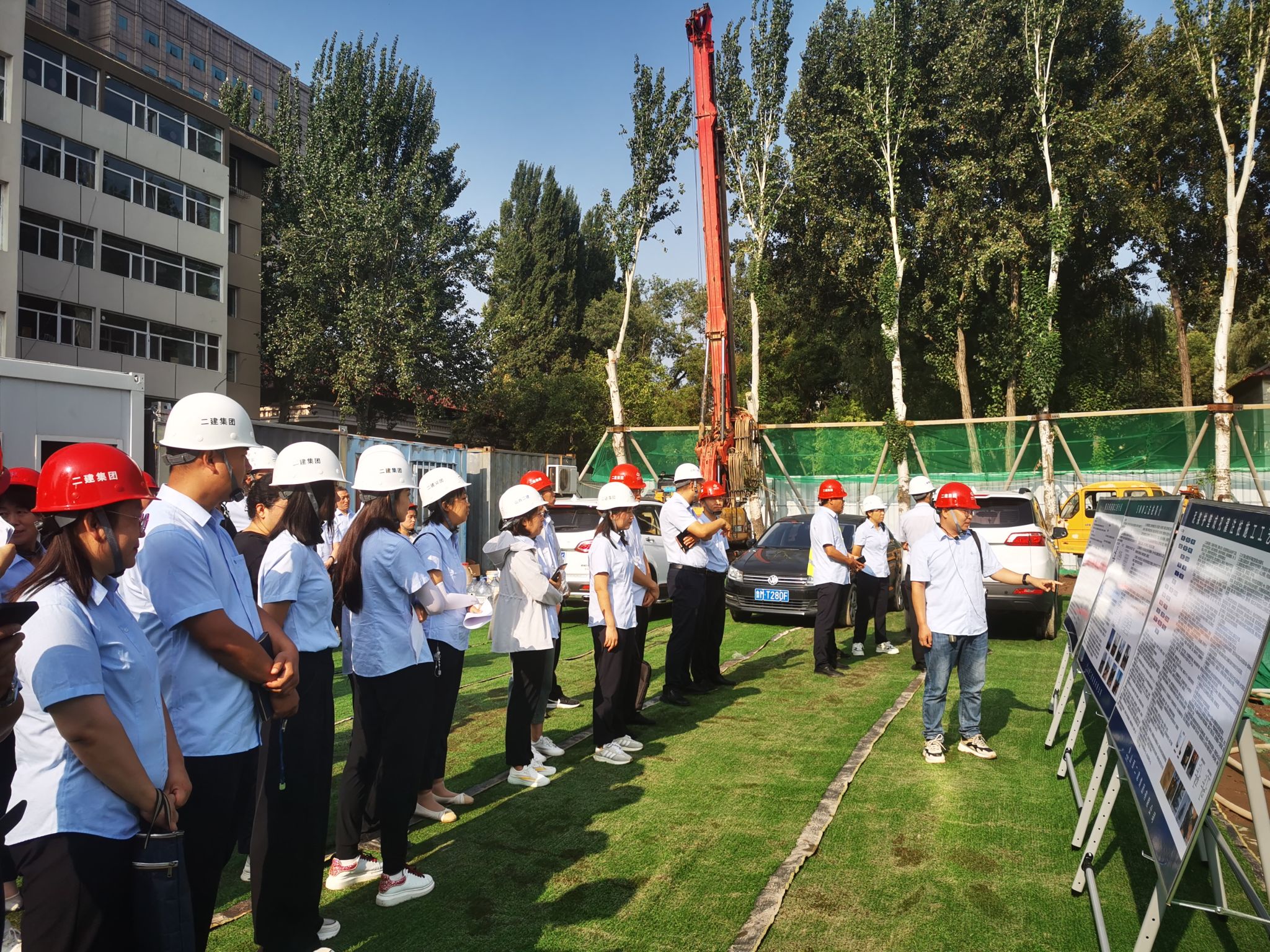 现场人员观摩了桃园居项目基坑支护及降水、泥浆护壁灌注桩施工。项目技术负责人结合施工现场情况对“桩与桩基础工程介绍”“SMW工法桩施工工艺”和“泥浆护壁成孔灌注桩施工工艺”三个展板内容及现场桩基施工过程进行详细讲解。