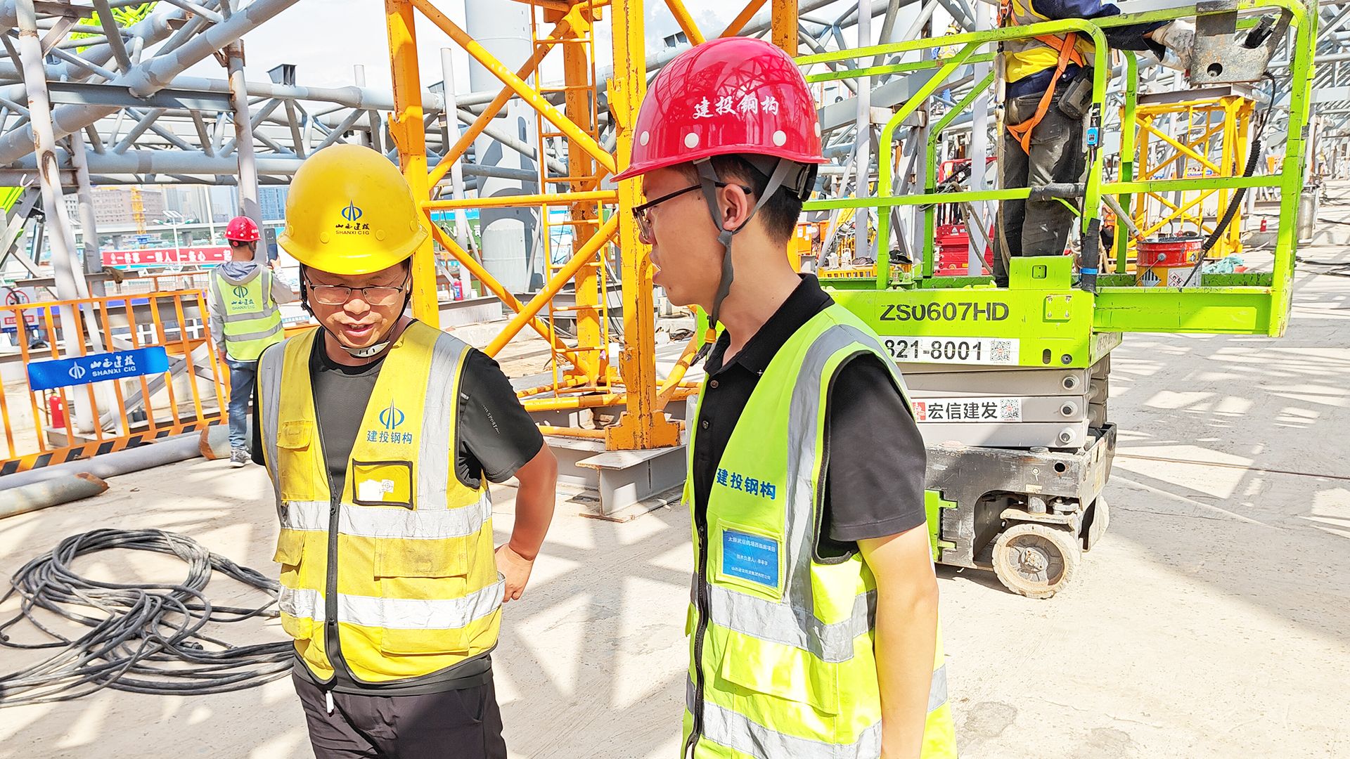西指廊项目经理霍雷雨也是忙得连轴转,杆件拼装、焊缝检测、桁架提升、安全检查、方案交底、进度监督、对接甲方、协调车间等,对现场100余人进行“排兵布阵”,不断细化施工方案,做好每日计划,确保建设进度。