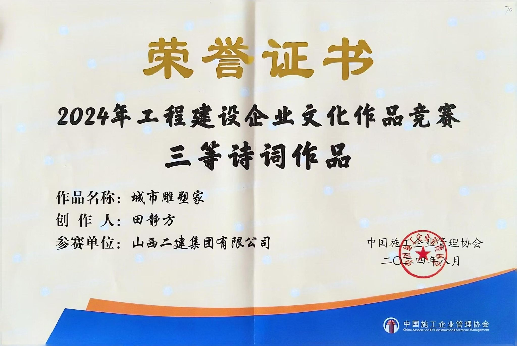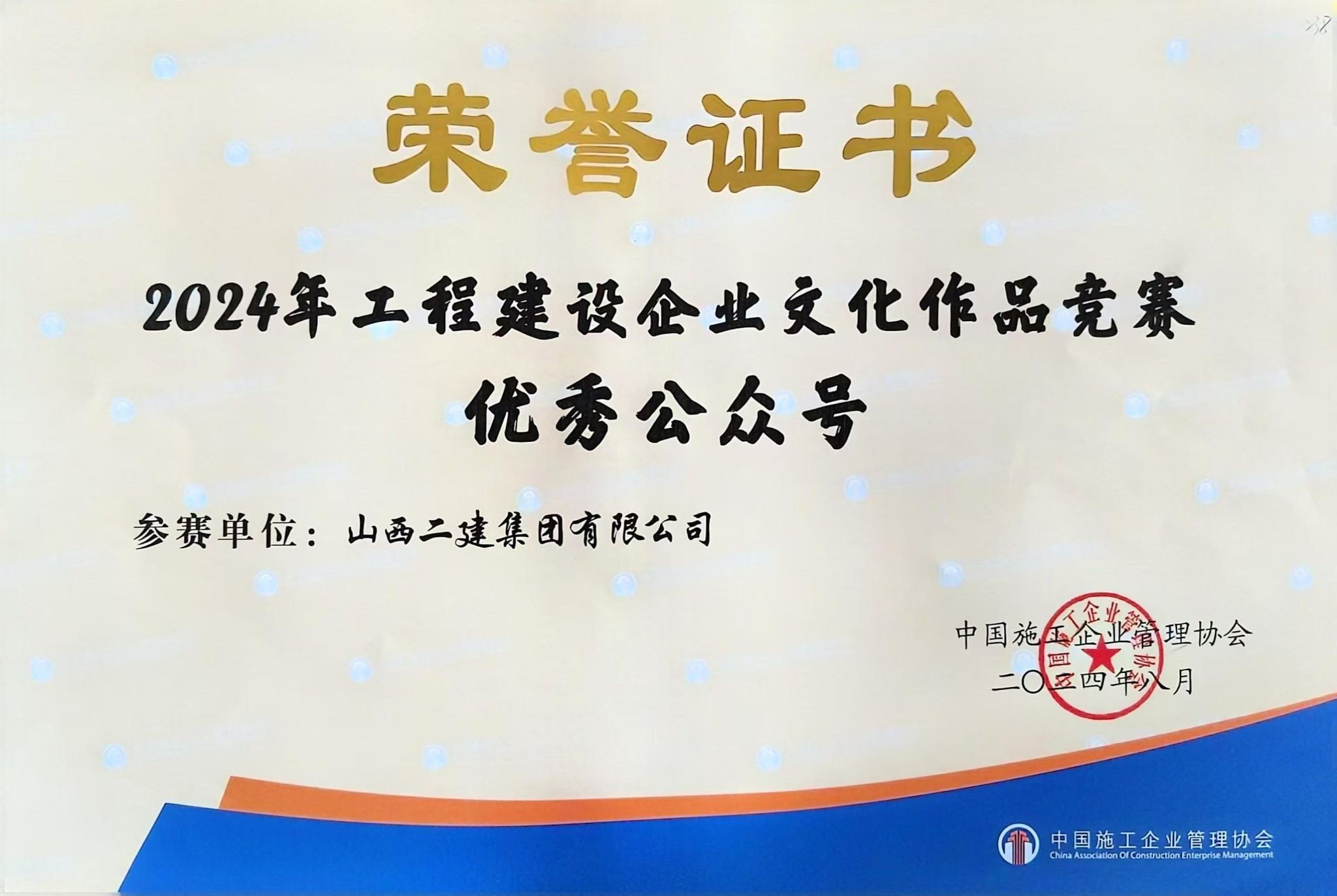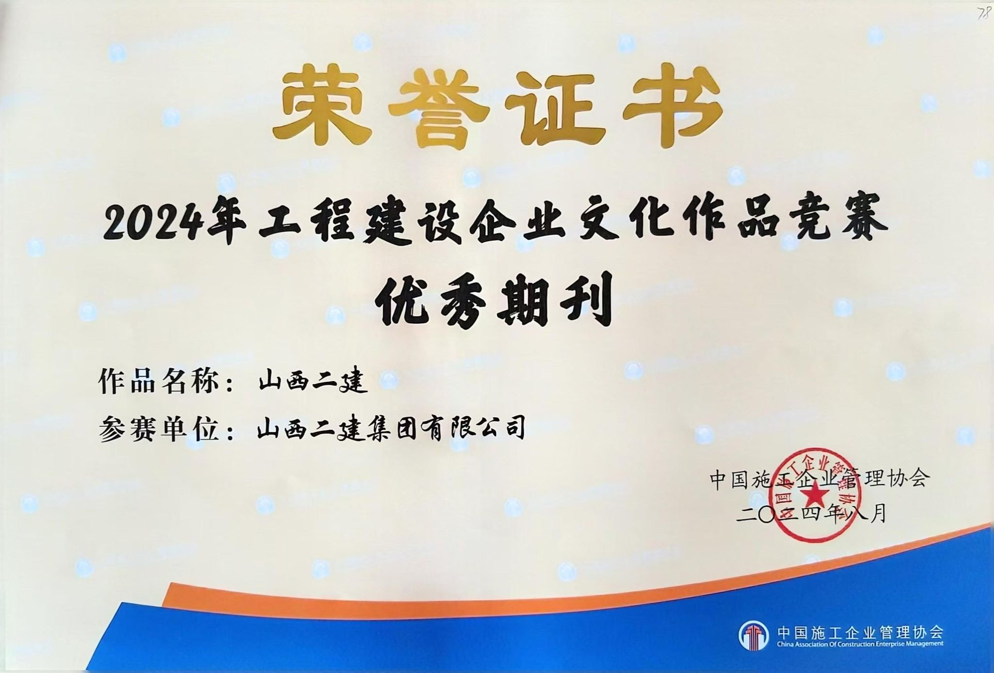 9月5日至6日,在2024年工程建设av线上建设成果交流会上,山西建投二建集团微信公众号、《山西二建》内刊分别荣获2024年工程建设企业优秀公众号、优秀期刊,案例《以av线上建设厚植企业高质量发展优势》荣获2024年工程建设av线上建设优秀案例,职工创作的绘画及诗词作品分别荣获二等奖、三等奖。