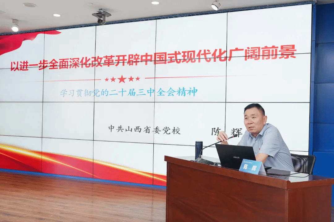 中共山西省委党校陈辉教授“以进一步全面深化改革开辟中国式现代化广阔前景”为题,紧紧围绕习近平总书记在党的二十届三中全会上的重要讲话和全会《决定》,阐明了推进中国式现代化的时代背景、历史方位和使命任务,阐释了进一步全面深化改革的指导思想、总目标和重大原则、重点领域。陈教授的讲座语言生动、内容丰富,充分运用典型案例和翔实数据,帮助学员不断加深对全会精神的理解。