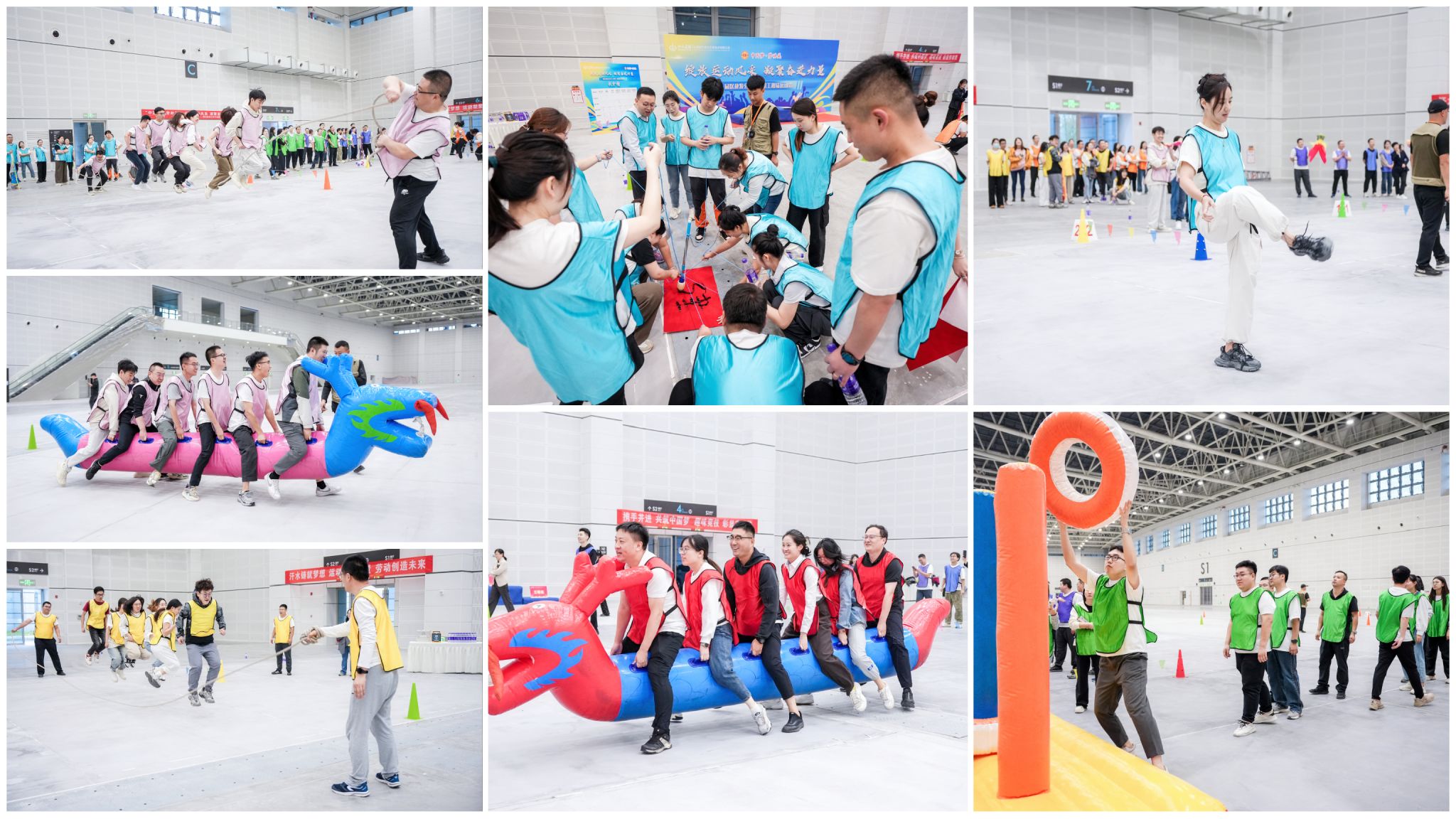 本次趣味运动会共设旱地龙舟、毽子接龙、趣味汉诺塔、团体跳绳、共筑非凡5个比赛项目,充满趣味性、协作性与竞争性。每名运动员都以饱满的热情和高昂的斗志投入到比赛中,比速度、比耐力、比技巧,团结协作、创新战术、挑战自我,充分展现了勇于拼搏、积极向上的精神风貌。